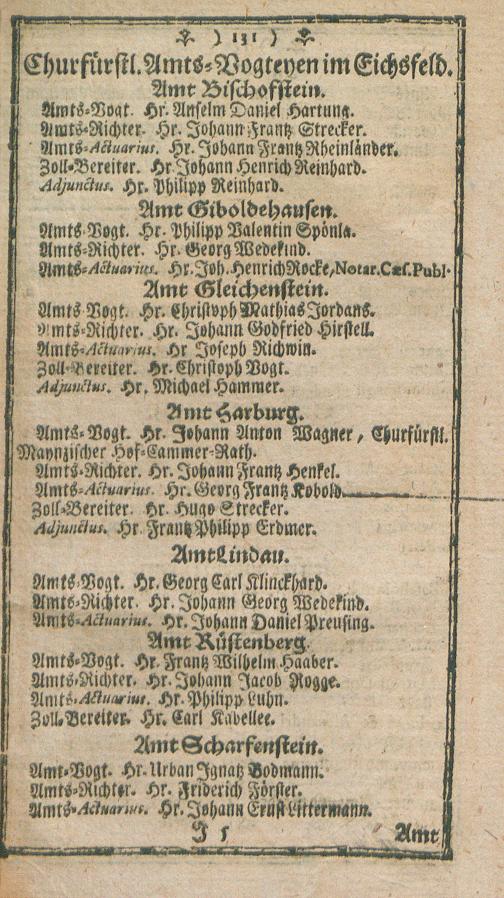 Chur-Maynzischer Hof-, Staats- und Stands-Calender : auf das Jahr nach unsers Herrn und Heilands Jesu Christi gnadenreichen Geburt ...
