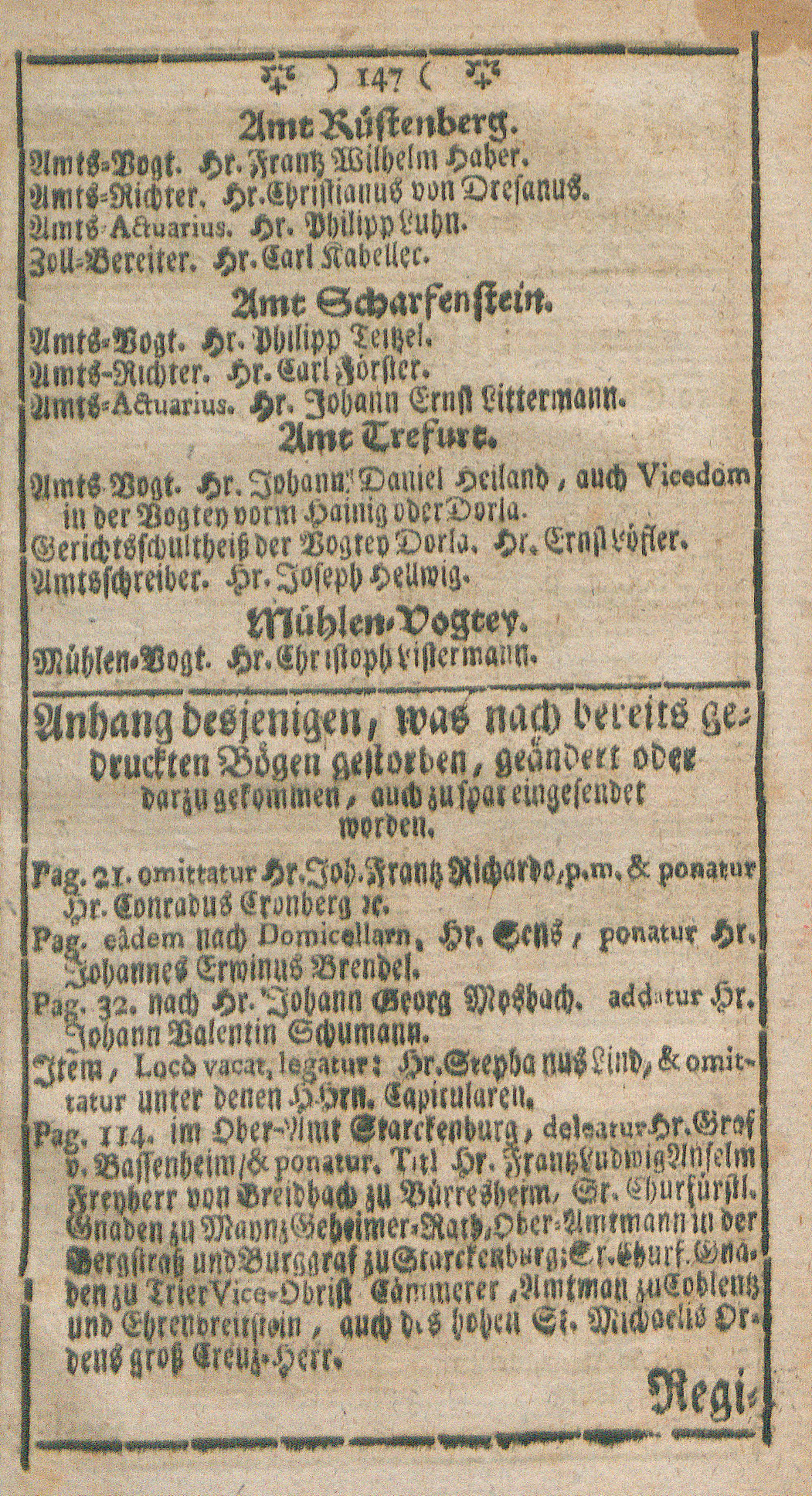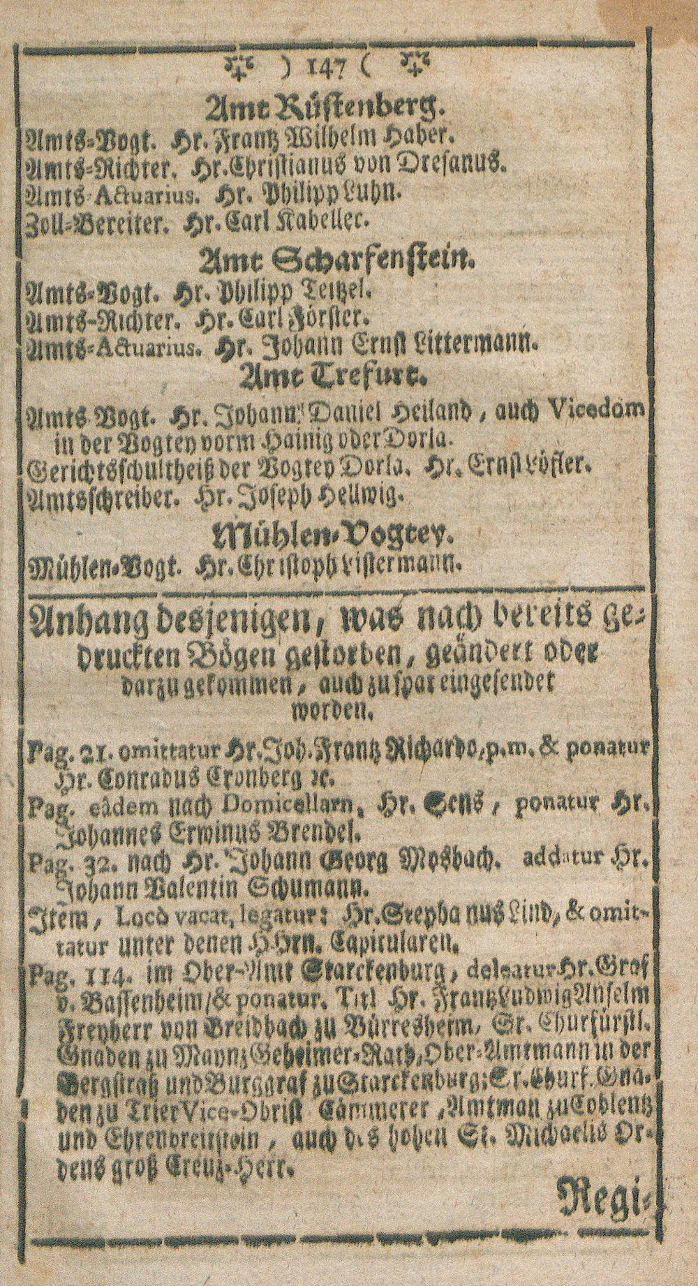Chur-Maynzischer Hof-, Staats- und Stands-Calender : auf das Jahr nach unsers Herrn und Heilands Jesu Christi gnadenreichen Geburt ...