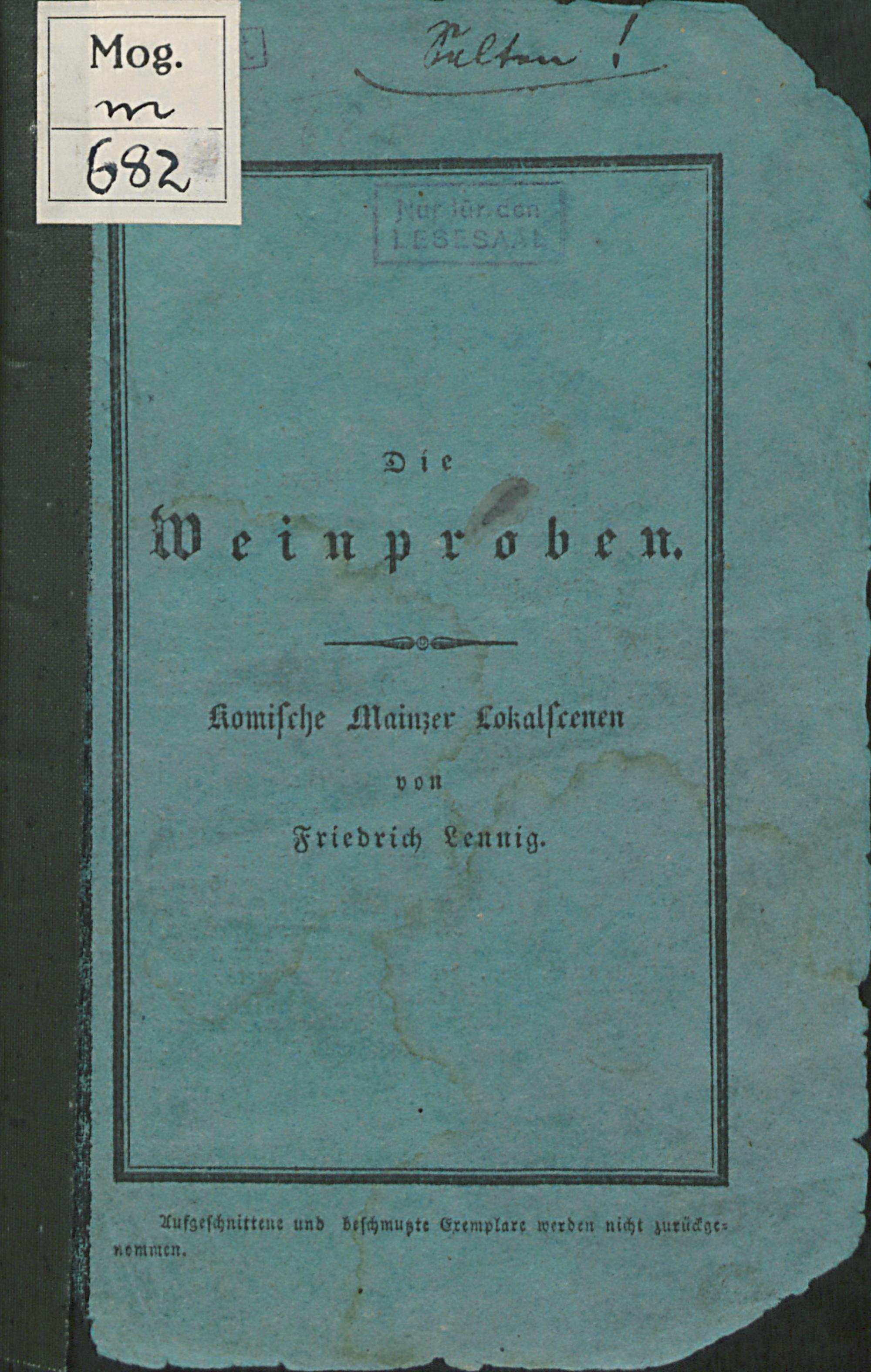Die Weinproben : komische Mainzer Lokalscenen / von Friedrich Lennig