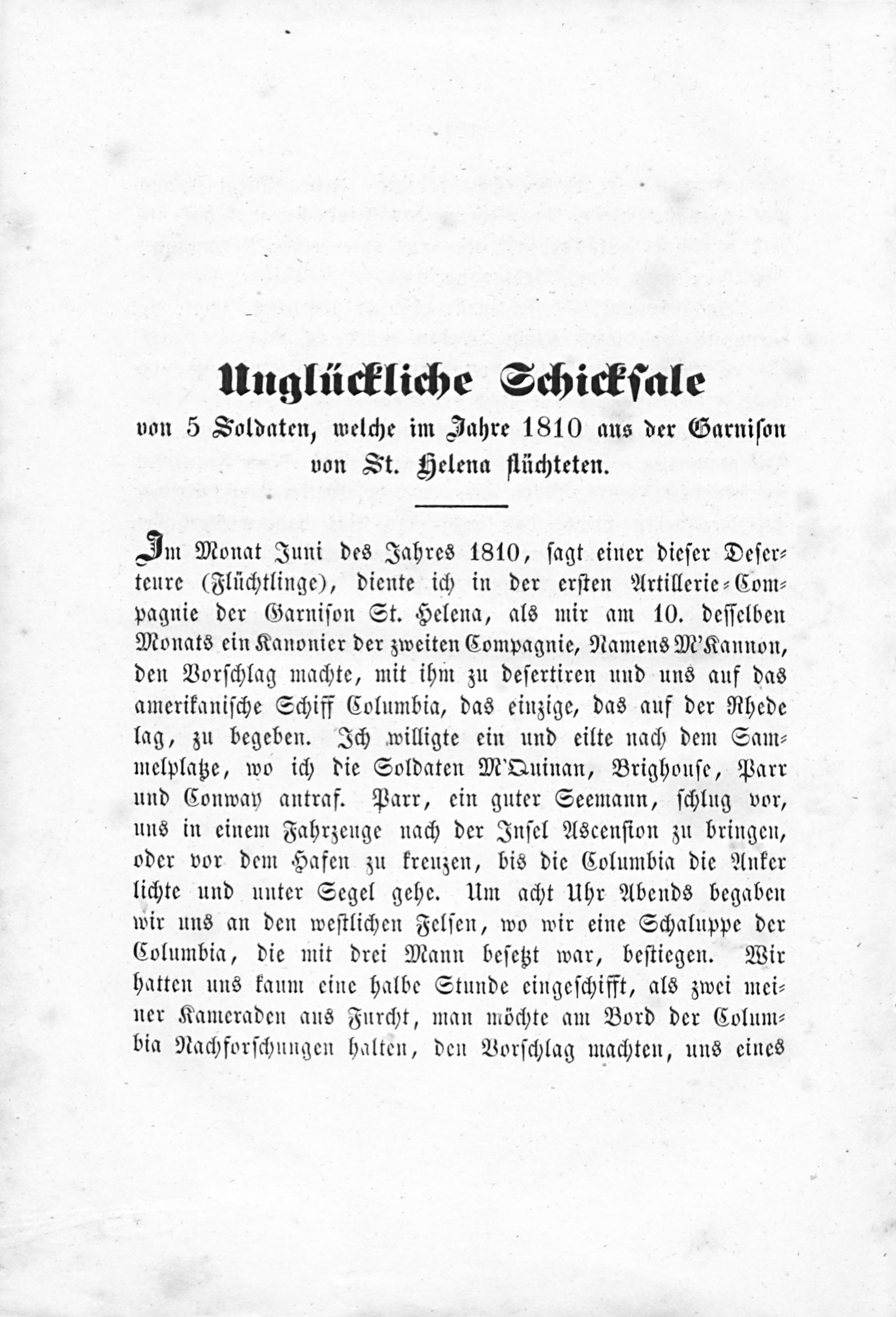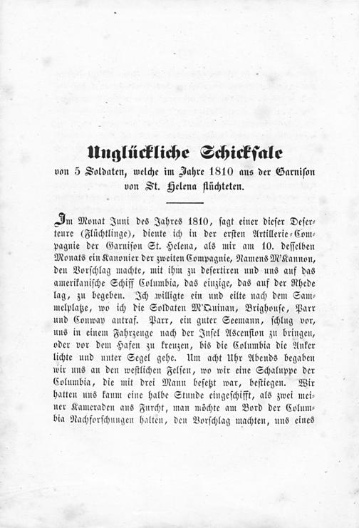 Unglückliche Schicksale von5 Soldaten, welche im Jahre 1810 aus der Garnison von St. Helena flüchteten.