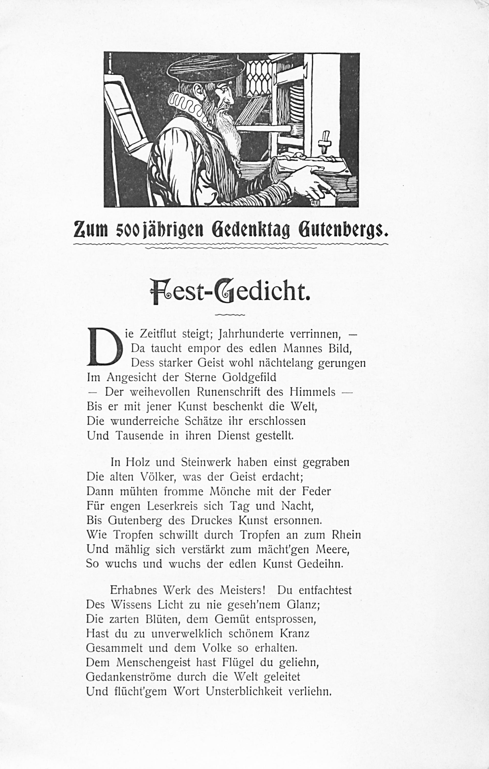 Zum fünfhundertjährigen Gedenktag Gutenbergs. Fest-Gedicht.