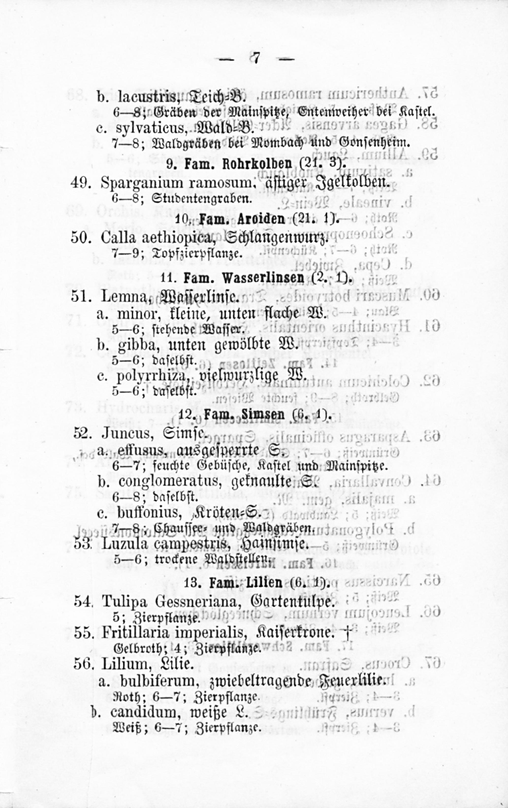 II. Klasse: Laubkryptogamen (24). - III. Klasse: Einsamenlappige Pflanzen.