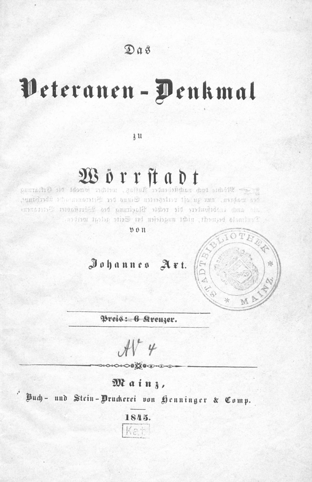 Das Veteranen-Denkmal zu Wörrstadt / Johannes Axt