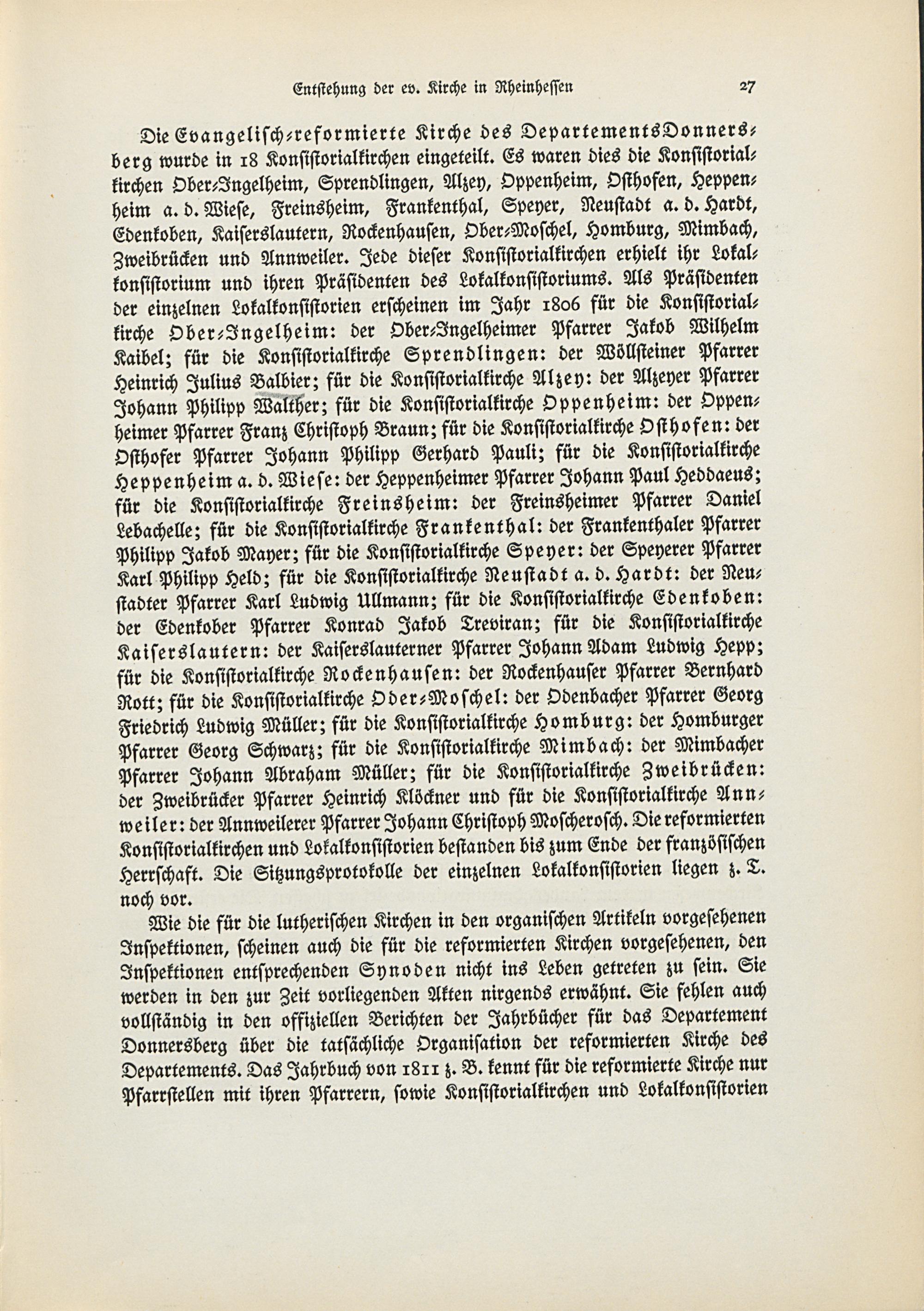 1. Die reformierten und die lutherischen Pfarreien im Departement Donnersberg und...