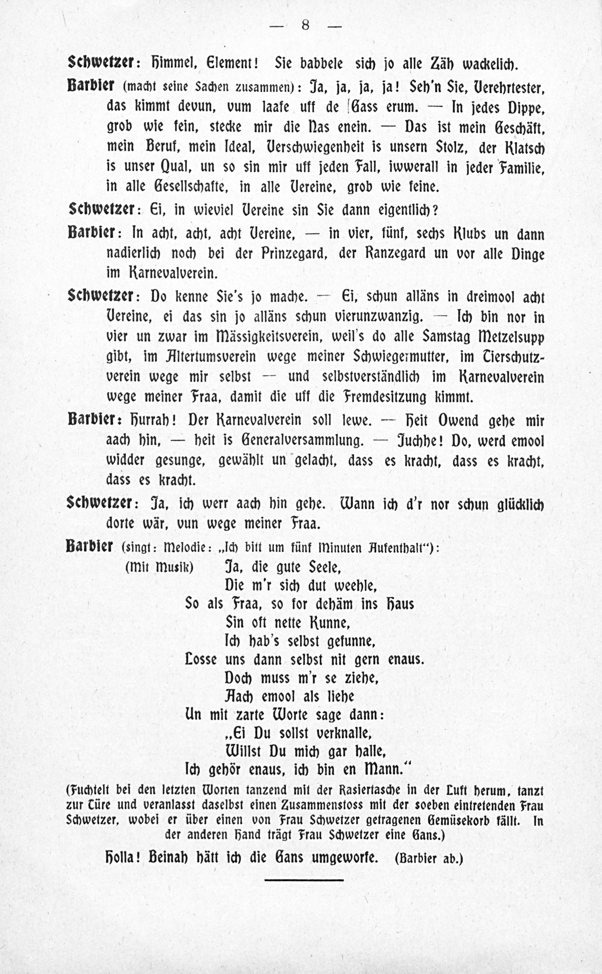 Babbel nit! Oder: Was kitzelt's mich an de Füss! : Mainzer Karnevalsposse ; lustige Volksbilder mit Gesang und Ballett in fünf Akten ; aufgeführt am Mainzer Stadt-Theater vor und zu Fastnacht 1909 / von Jean Dremmel