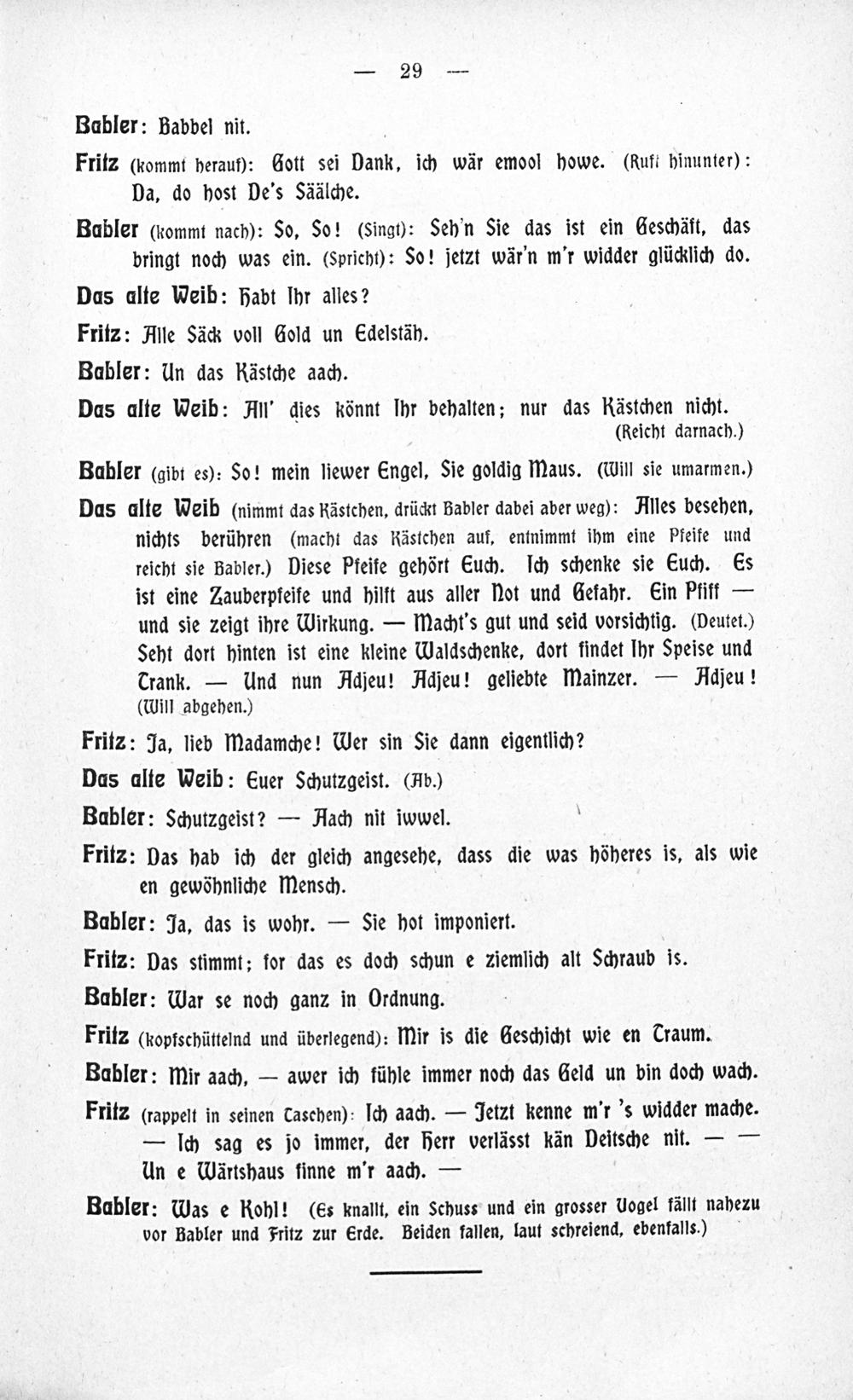 Babbel nit! Oder: Was kitzelt's mich an de Füss! : Mainzer Karnevalsposse ; lustige Volksbilder mit Gesang und Ballett in fünf Akten ; aufgeführt am Mainzer Stadt-Theater vor und zu Fastnacht 1909 / von Jean Dremmel