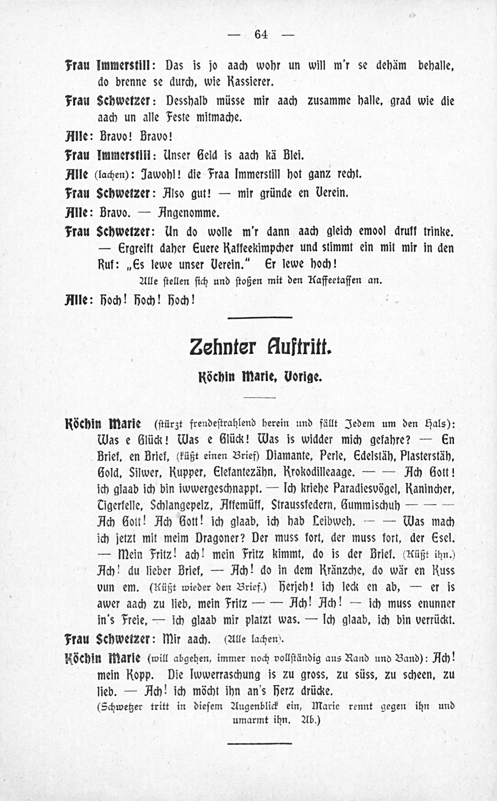 Anhang. Text zu dem im fünften Akt bei Frau Schwetzer angeführten Klouplet.
