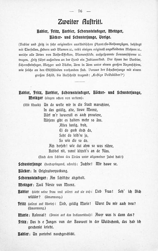 Babbel nit! Oder: Was kitzelt's mich an de Füss! : Mainzer Karnevalsposse ; lustige Volksbilder mit Gesang und Ballett in fünf Akten ; aufgeführt am Mainzer Stadt-Theater vor und zu Fastnacht 1909 / von Jean Dremmel