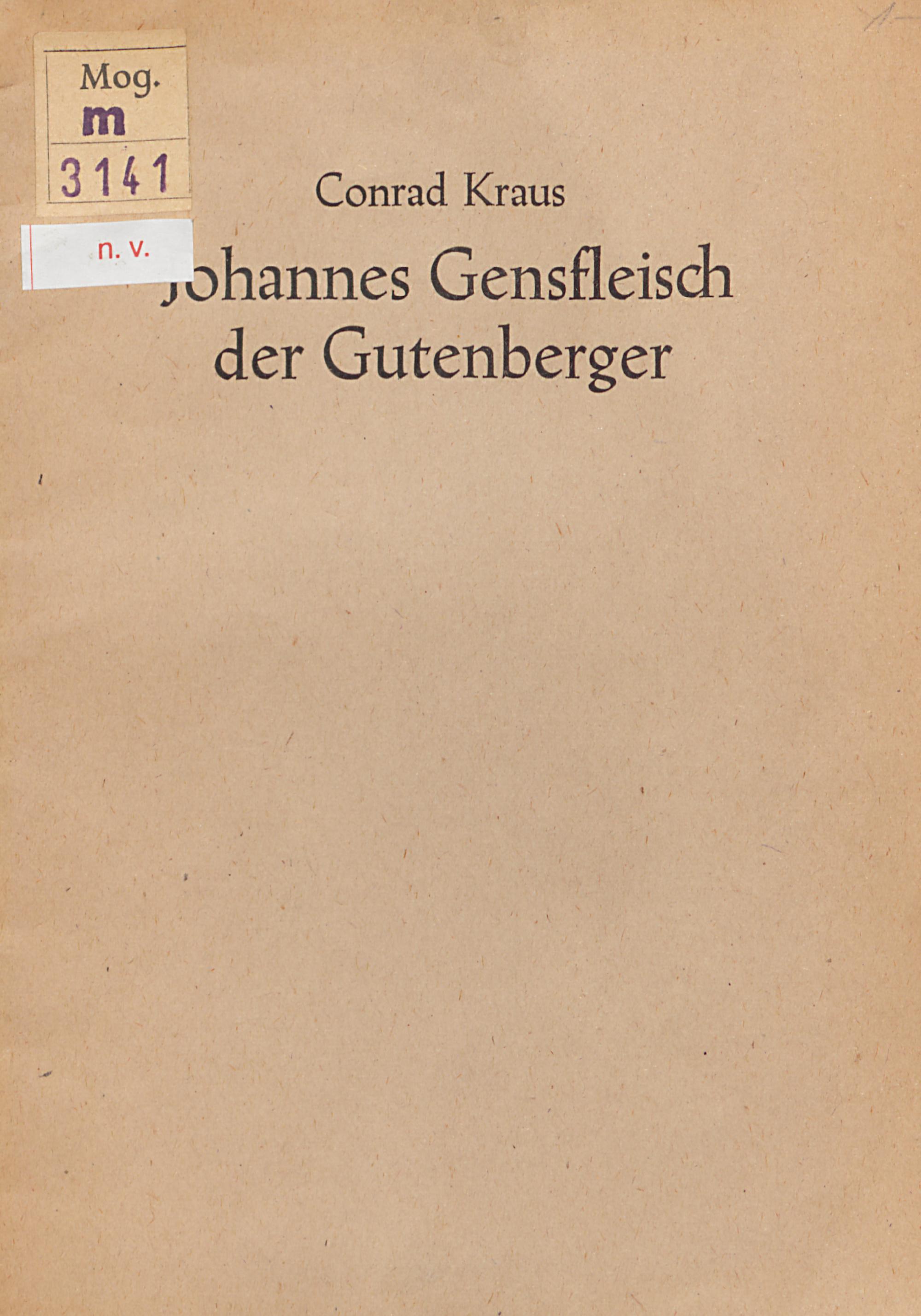 Johannes Gensfleisch der Gutenberger : historische Novelle aus dem 15. Jahrhundert / Conrad Kraus