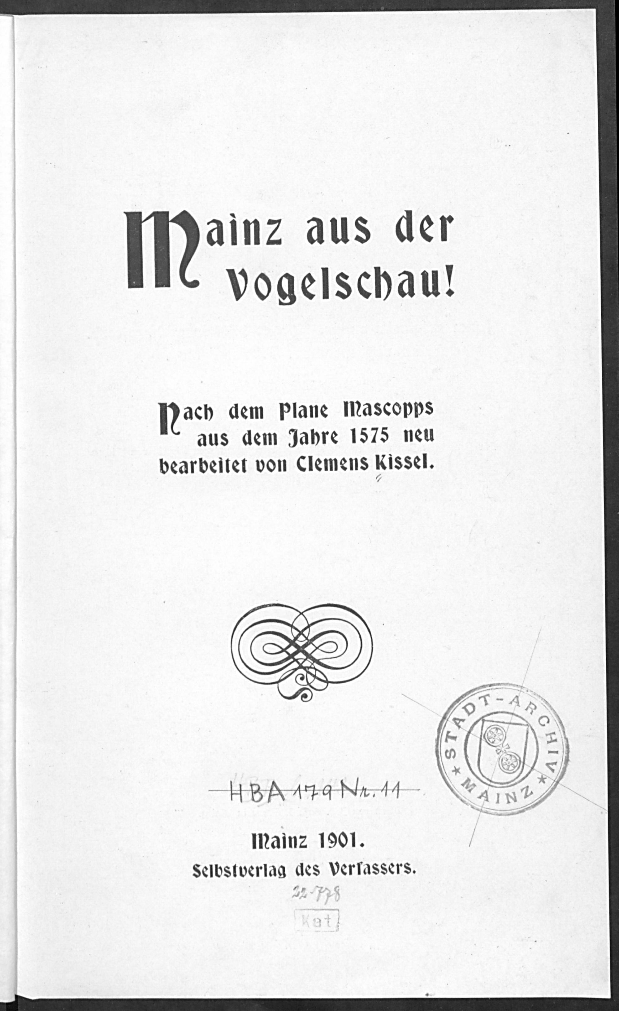 Mainz aus der Vogelschau! : nach dem Plane Mascopps aus dem Jahre 1575 neu bearb. / von Clemens Kissel