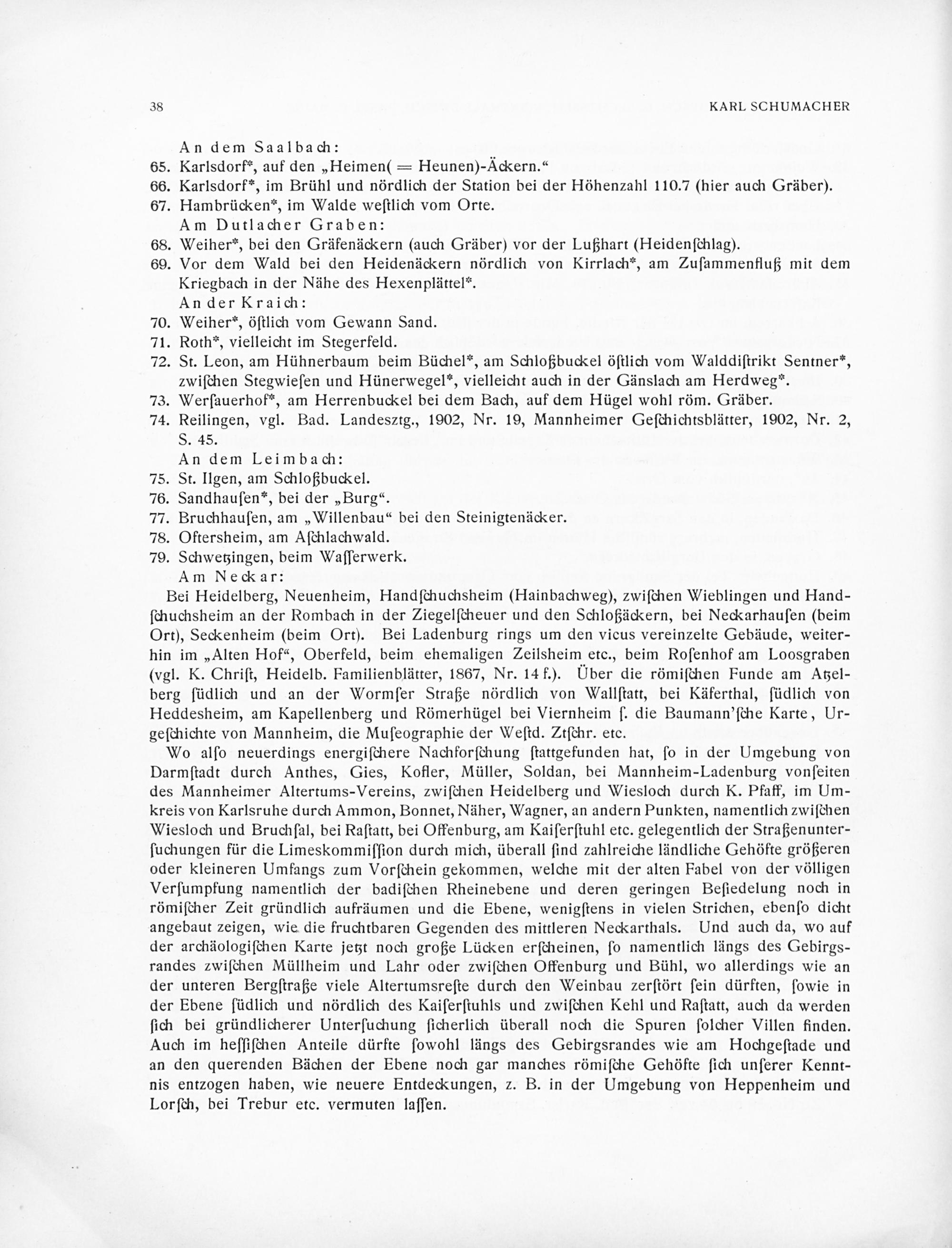 Zur Besiedelungs-Geschichte des rechtsseitigen Rheintals zwischen Basel und Mainz von Karl Schumacher