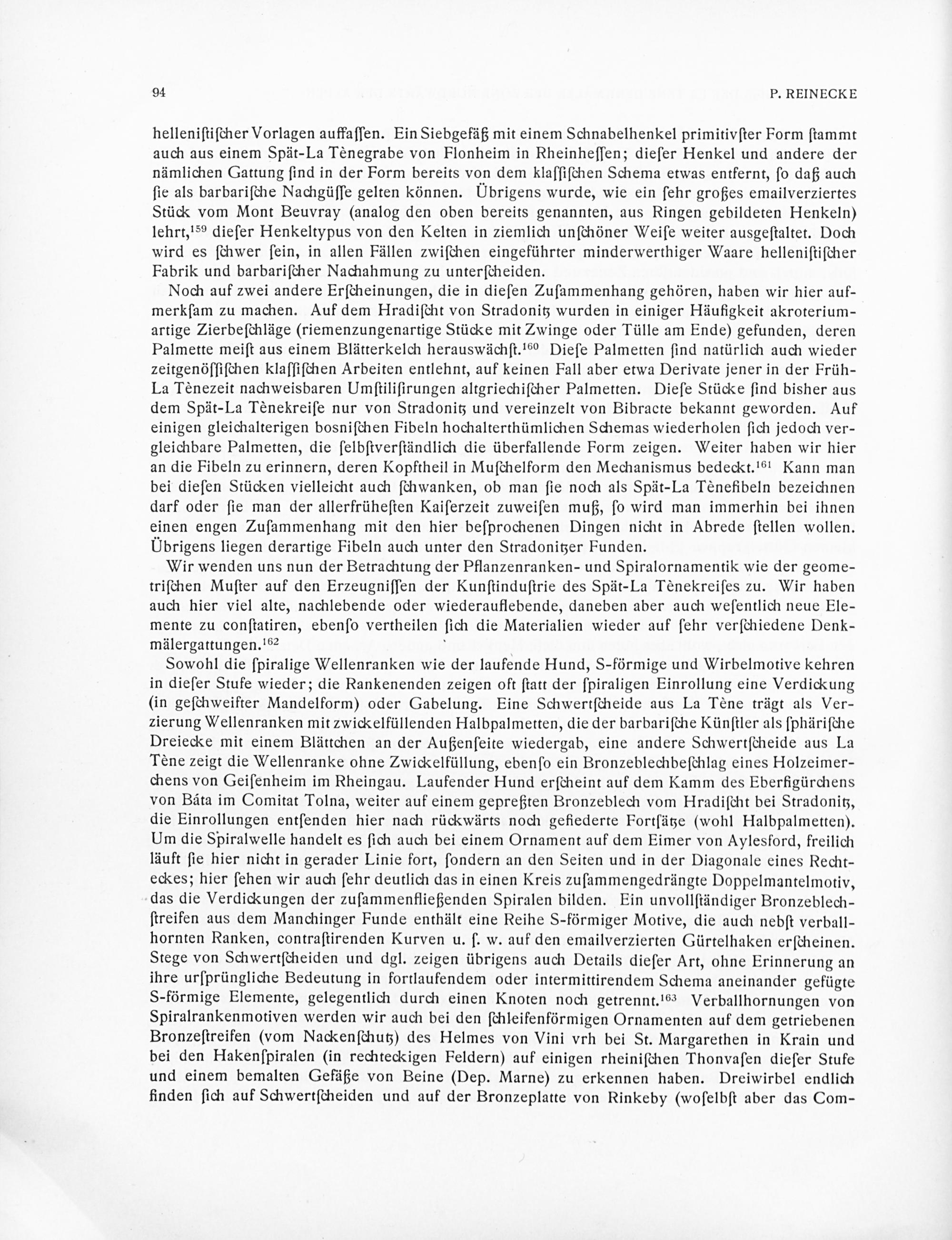Zur Kenntnis der La tène-Denkmäler der Zone nordwärts der Alpen von P. Reinecke
