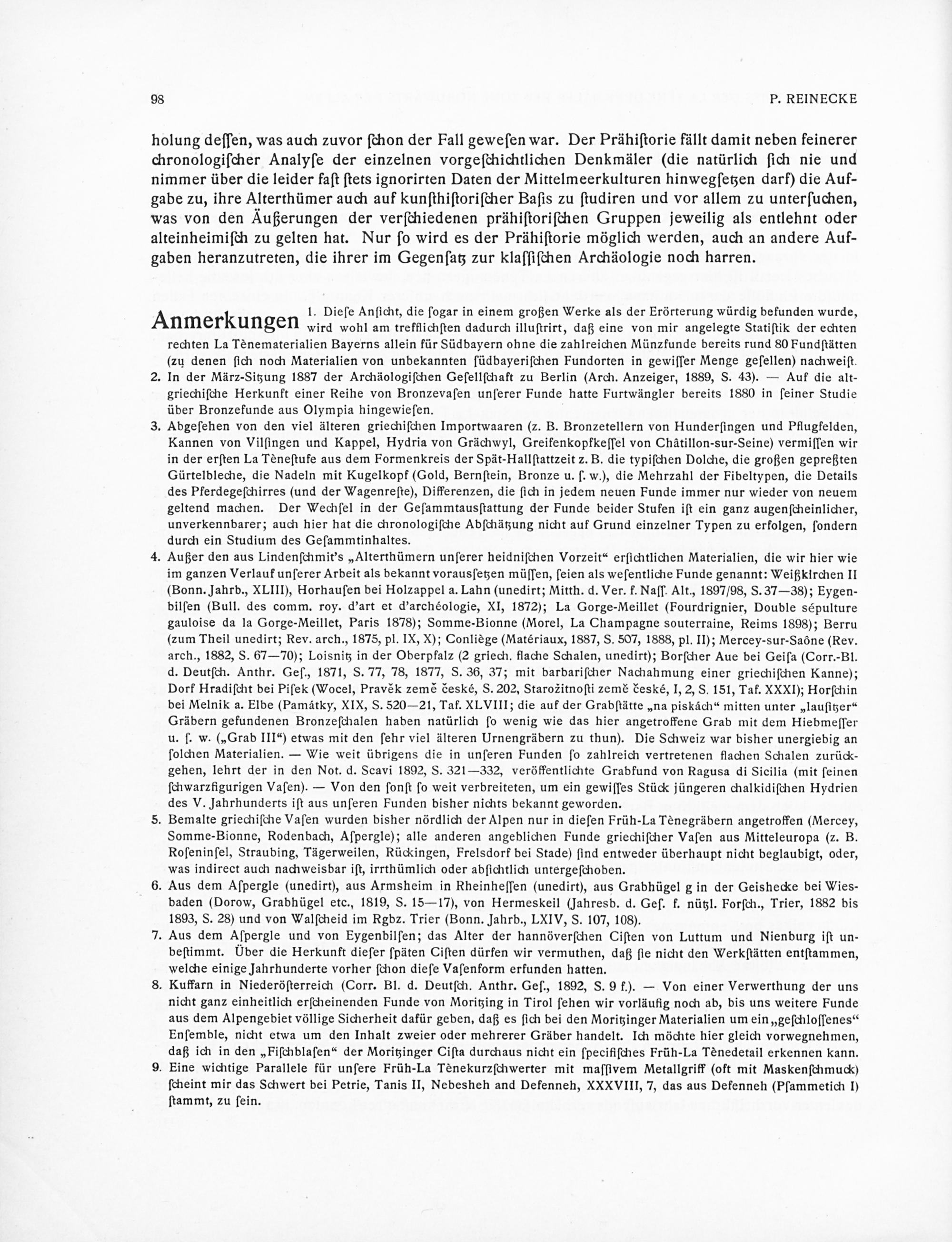 Zur Kenntnis der La tène-Denkmäler der Zone nordwärts der Alpen von P. Reinecke