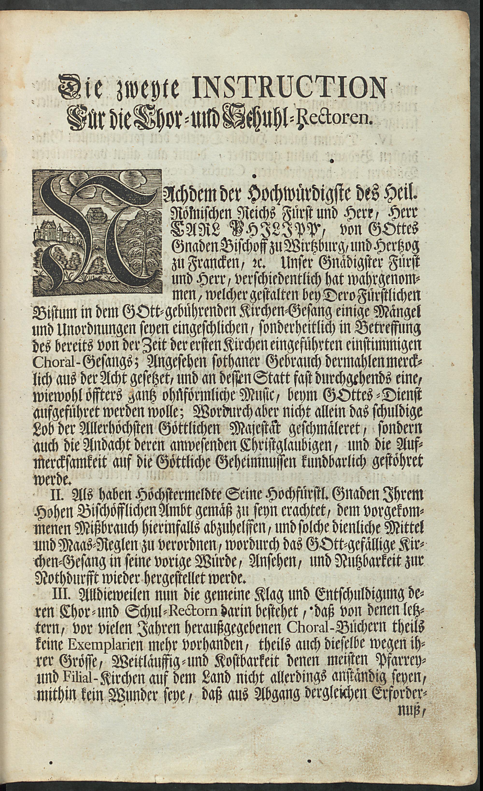 Subsidium Chorale Sacri Cantus Ecclesiastici : Ex Pluribus Libris Cantum Gregoriano-Moguntinum Continentibus Extractum : Ad Necessitatem & Commodum Ecclesiarum Parochialium, & Filialium Per Diœcesim Herbipolensem, Auctoritate & Jussu Reverendissimi, Ac Celisissimi Domini, D. Caroli Philippi, D.G. Episcopi Herbipolensis, S.R.I. Principis, ac Franciæ Orientalis Ducis &c. Domini Nostri Clementissimi Editum, Cum prævio Decreto, & duplici Instructione probè prælegendis