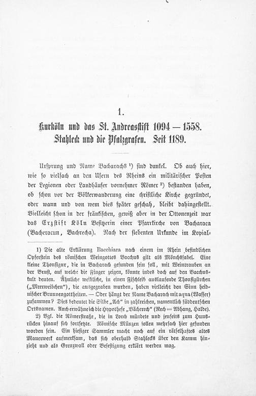 1. Kurköln und das St. Andreasstift 1094-1558. Stahleck und die Pfalzgrafen. Seit...