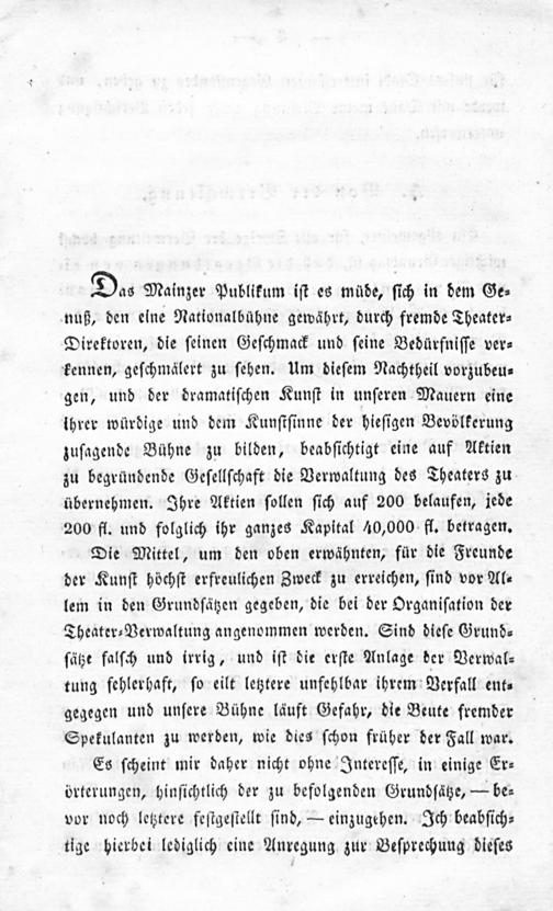 Einige Bemerkungen über die in Mainz projektirte Theater-Verwaltung mittelst einer auf Aktien gegründeten Gesellschaft / von W. P.