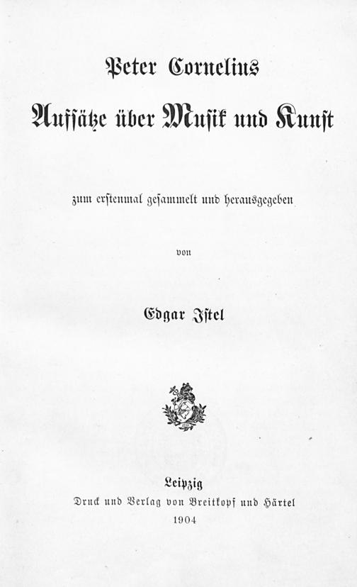 3. Band (1904) Aufsätze über Musik und Kunst / Peter Cornelius ; zum erstenmal gesammelt und herausgegeben von Edgar Istel