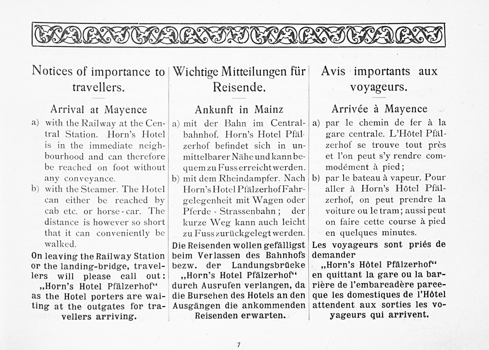 Horn's Hotel "Pfälzerhof" Mainz : Joh. Ad. Horn Eigentümer
