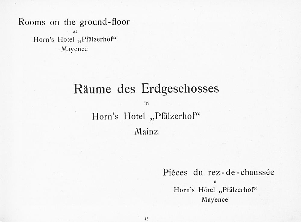 Horn's Hotel "Pfälzerhof" Mainz : Joh. Ad. Horn Eigentümer