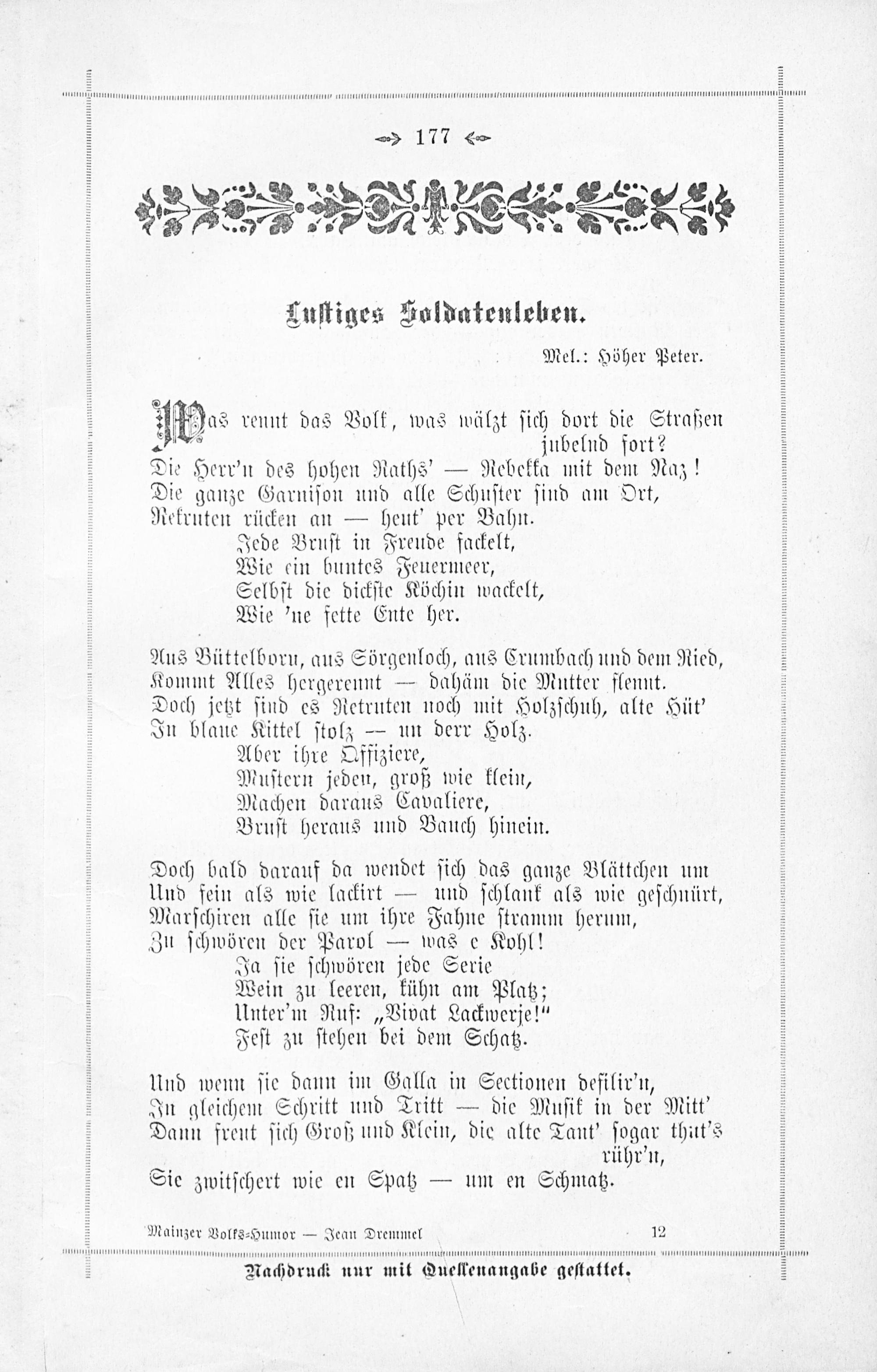 Dritte Abtheilung. Fidele Lieder mit Paukenschlag und Hörnerklang, daß einem wird...