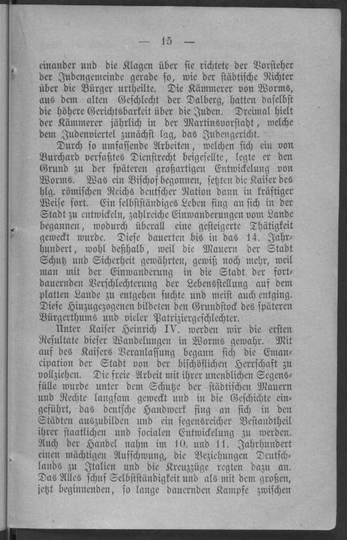 Kurzer Ueberblick der Geschichte der Stadt Worms bis auf unsere Tage