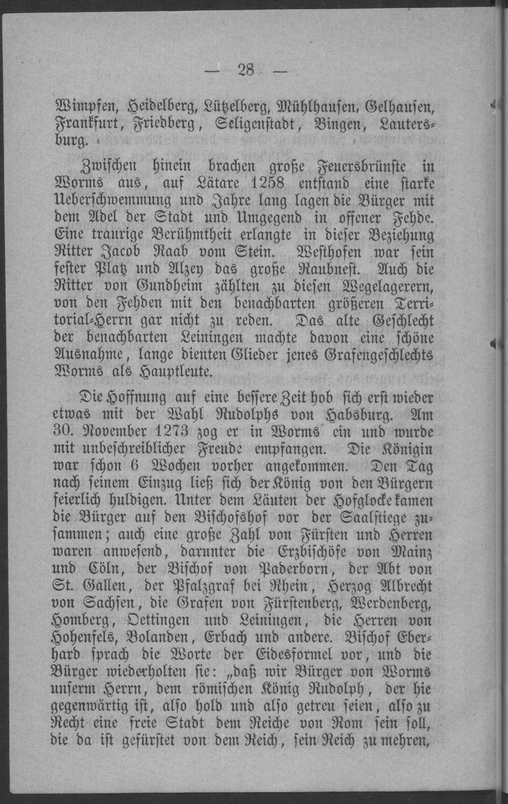 Kurzer Ueberblick der Geschichte der Stadt Worms bis auf unsere Tage