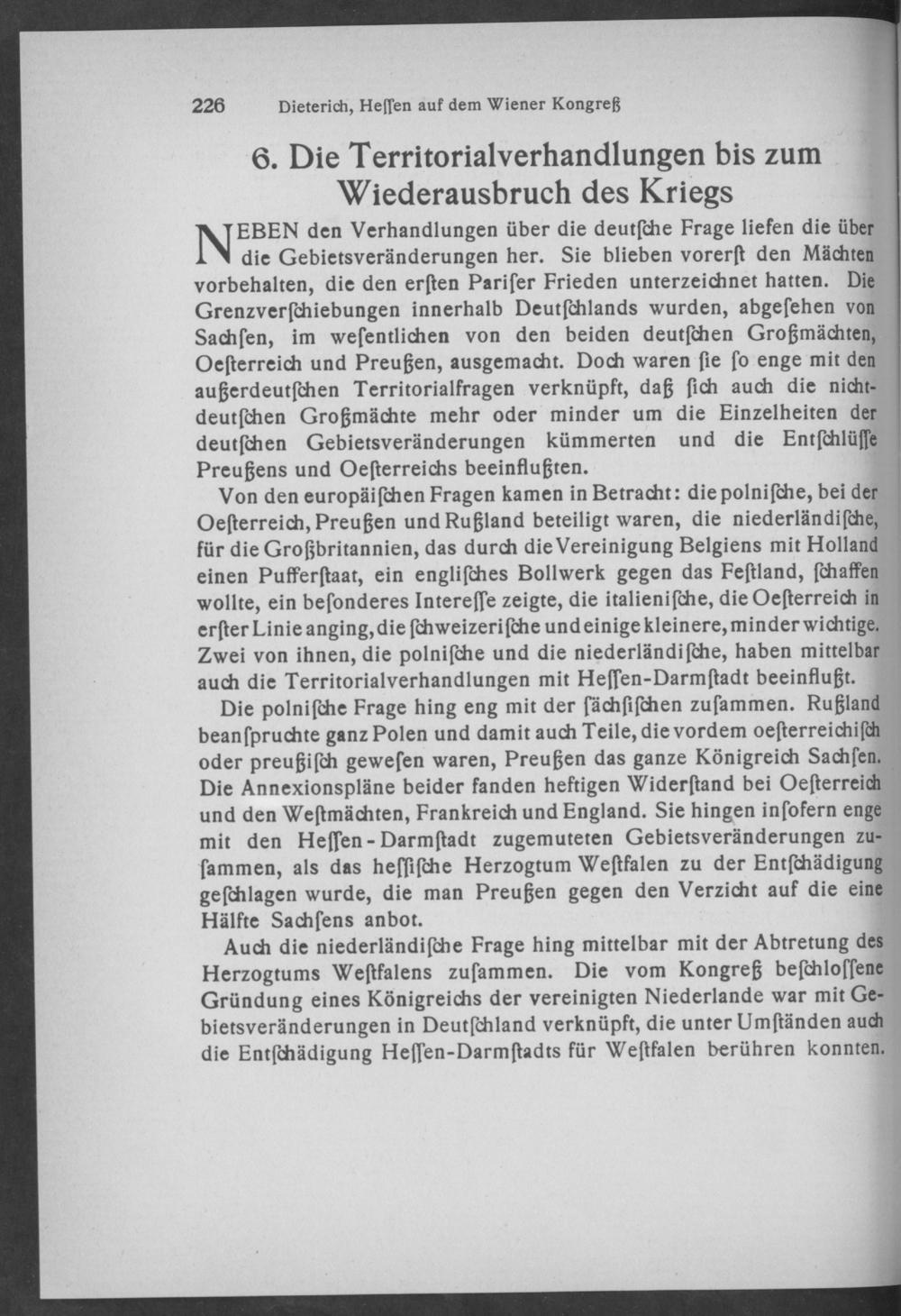 6. Die Territorialverhandlungen bis zum Wiederausbruch des Kriegs