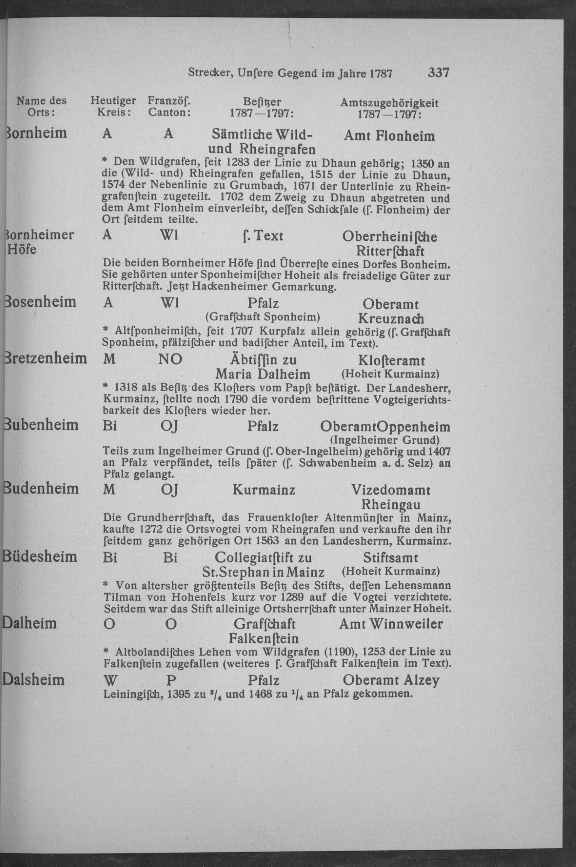 Alphabetisches Verzeichnis der Städte, Orte und Höfe in Rheinhessen sowie der Rheinauen...