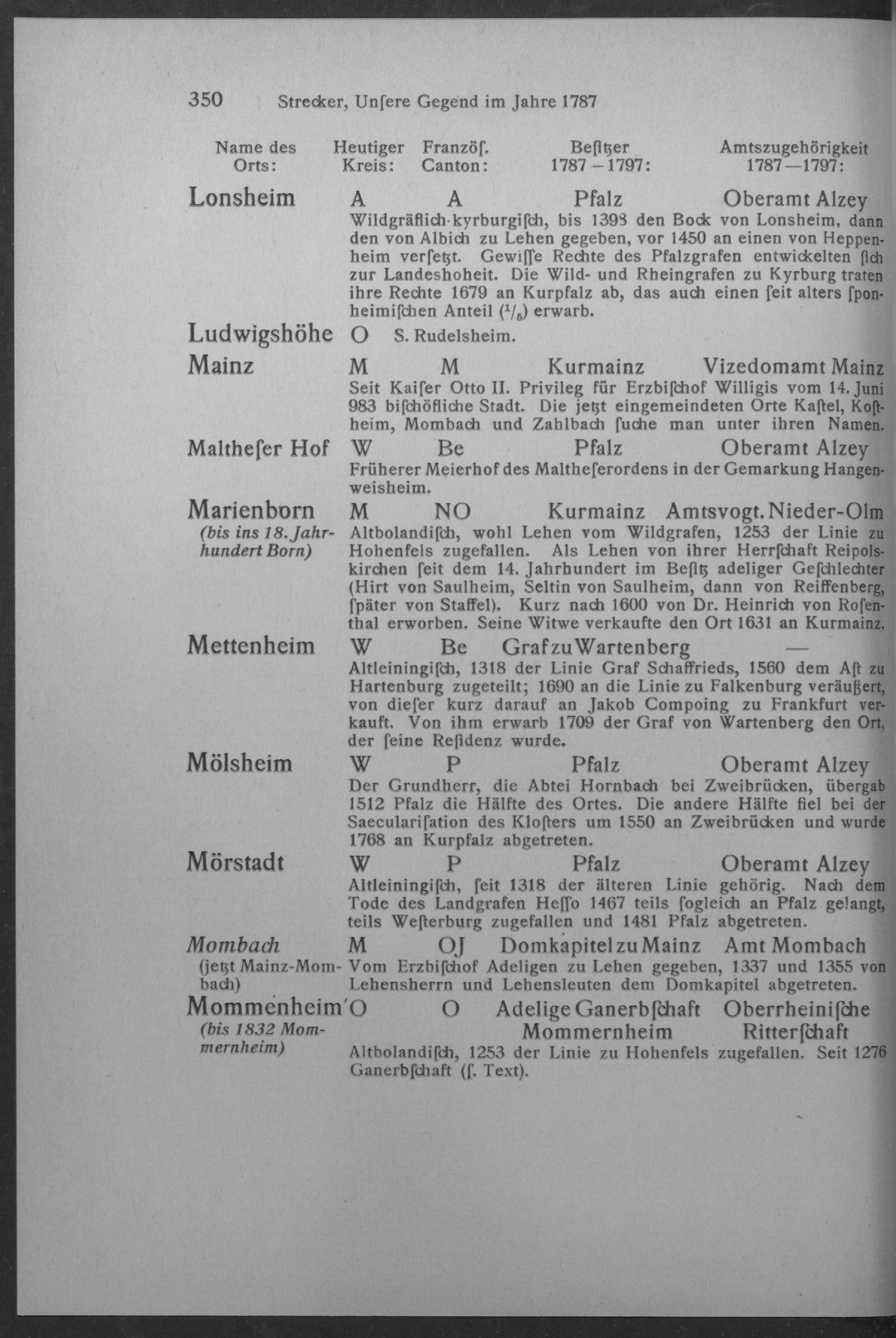 Alphabetisches Verzeichnis der Städte, Orte und Höfe in Rheinhessen sowie der Rheinauen...