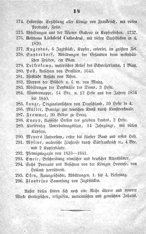 Katalog der Bibliothek des verstorbenen Grafen Franz v. Kesselstatt in Mainz, welche nebst einer bedeutenden Gemäldegallerie, einer Sammlung von Kupferstichen und von Alterthümern den 1. März 1842 und folgende Tage in Mainz öffentlich versteigert werden