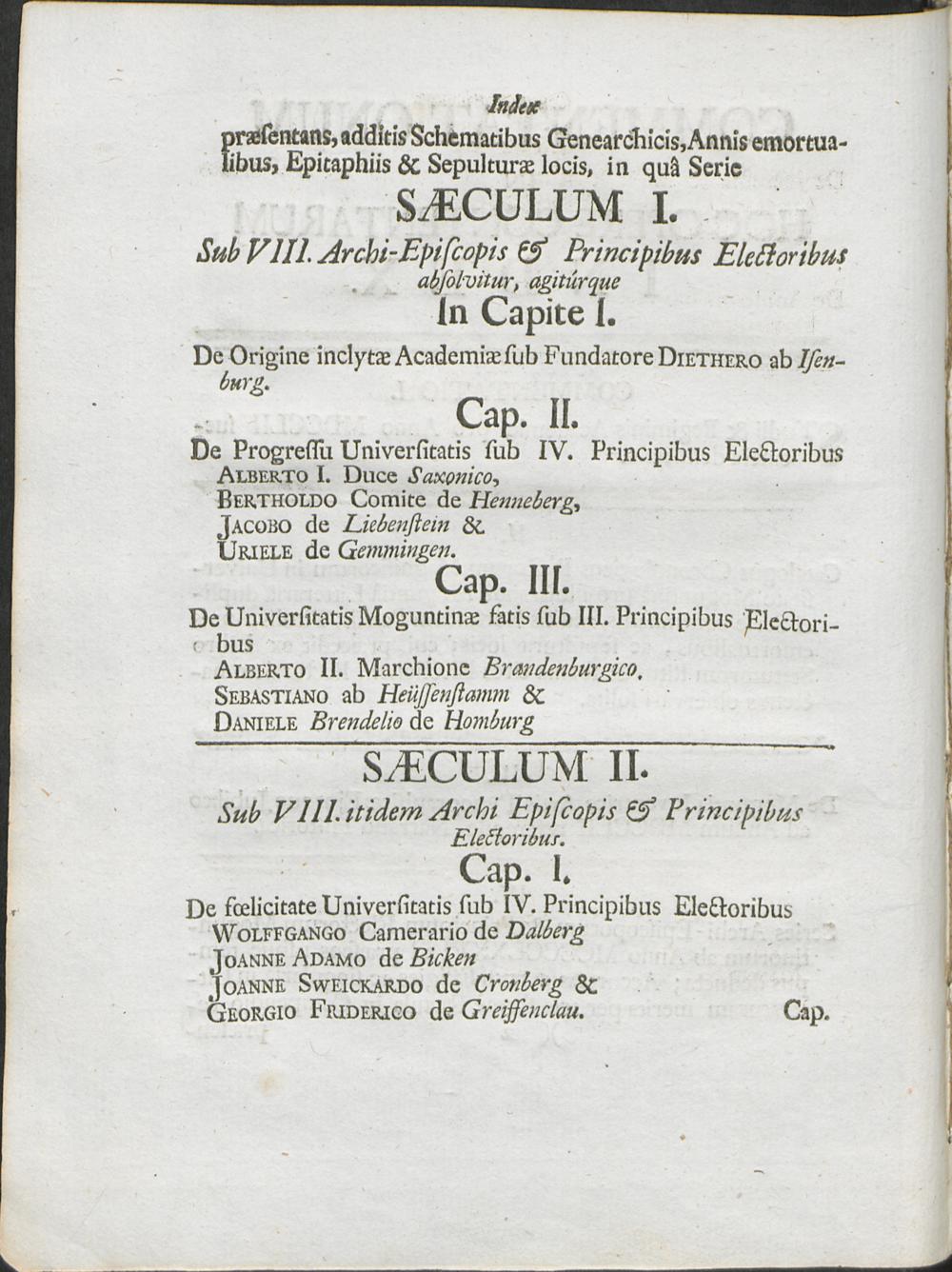 In Tabula Aeri Incisa Et Dedicationi praefixa indigantur Episcopi Suffraganei Sacrae Archi-Episcopalis Sedis Moguntinae.