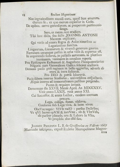 Caput I. De Studio Moguntino Pro Anno MDCCLII.