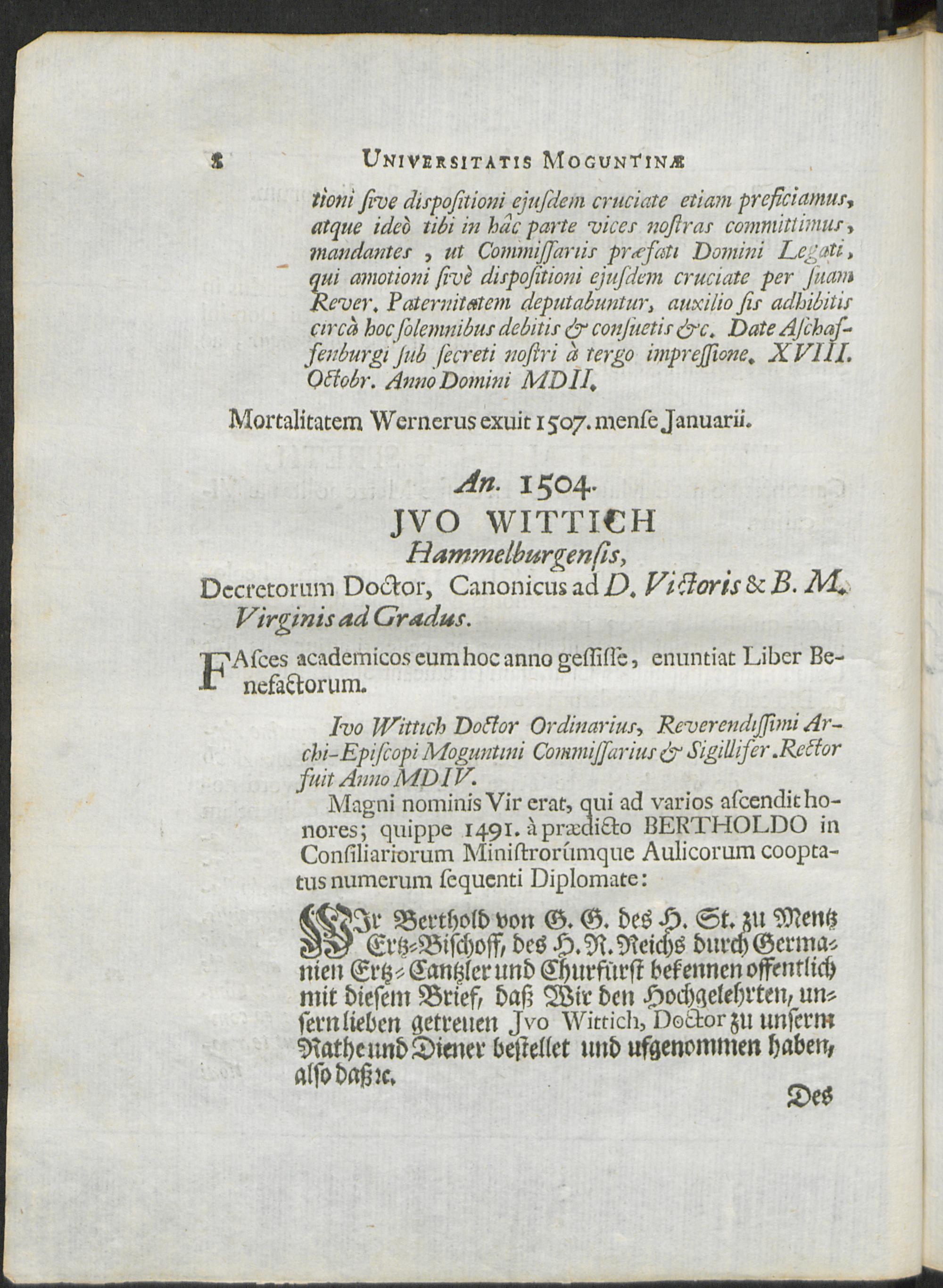 Sectio II. De Rectoribus Universitatis Moguntinae in primo saeculo Praesumptivis, seu Quatuor Facultatum Professoribus.