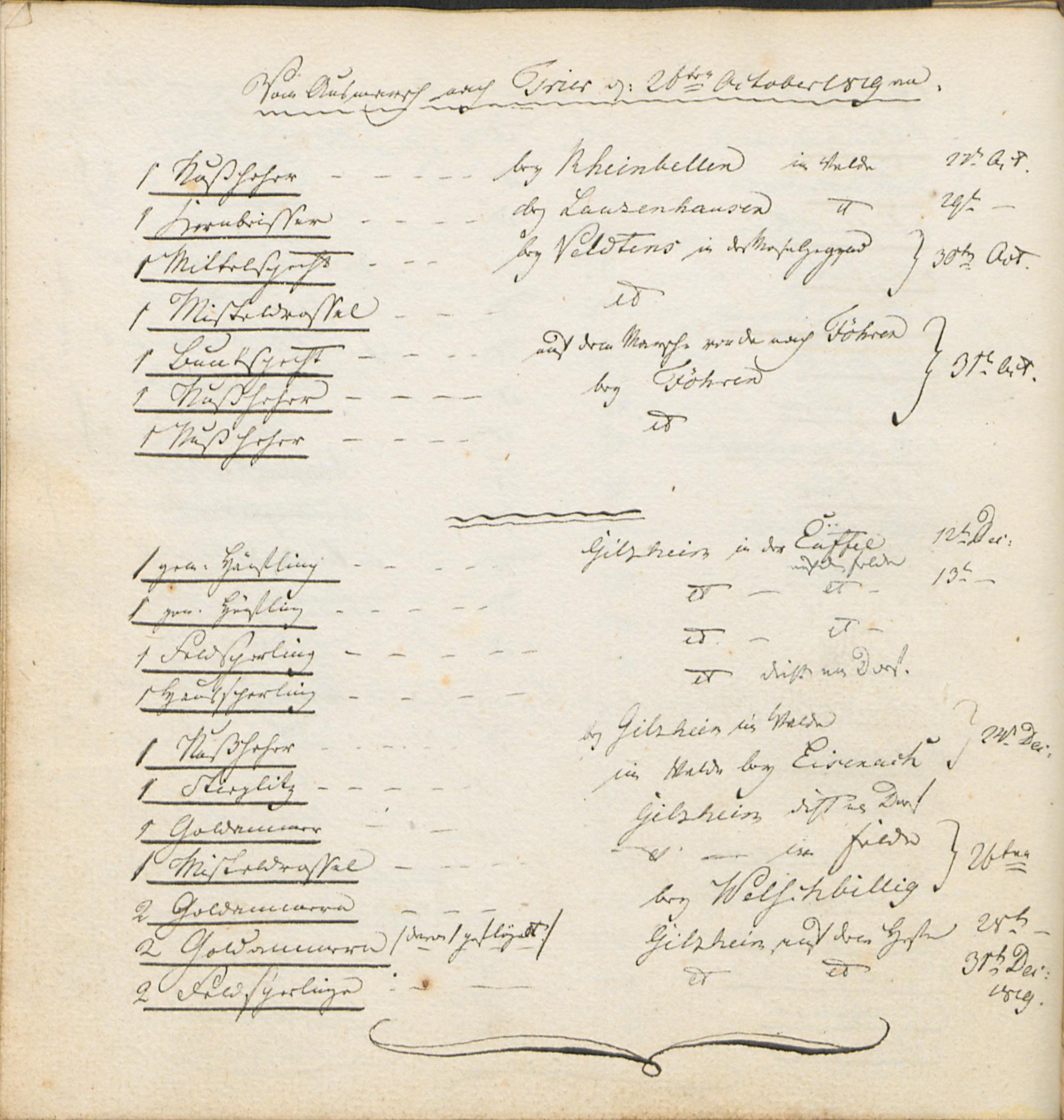 Vom Ausmarsch nach Trier d. 26ten October 1819 an.