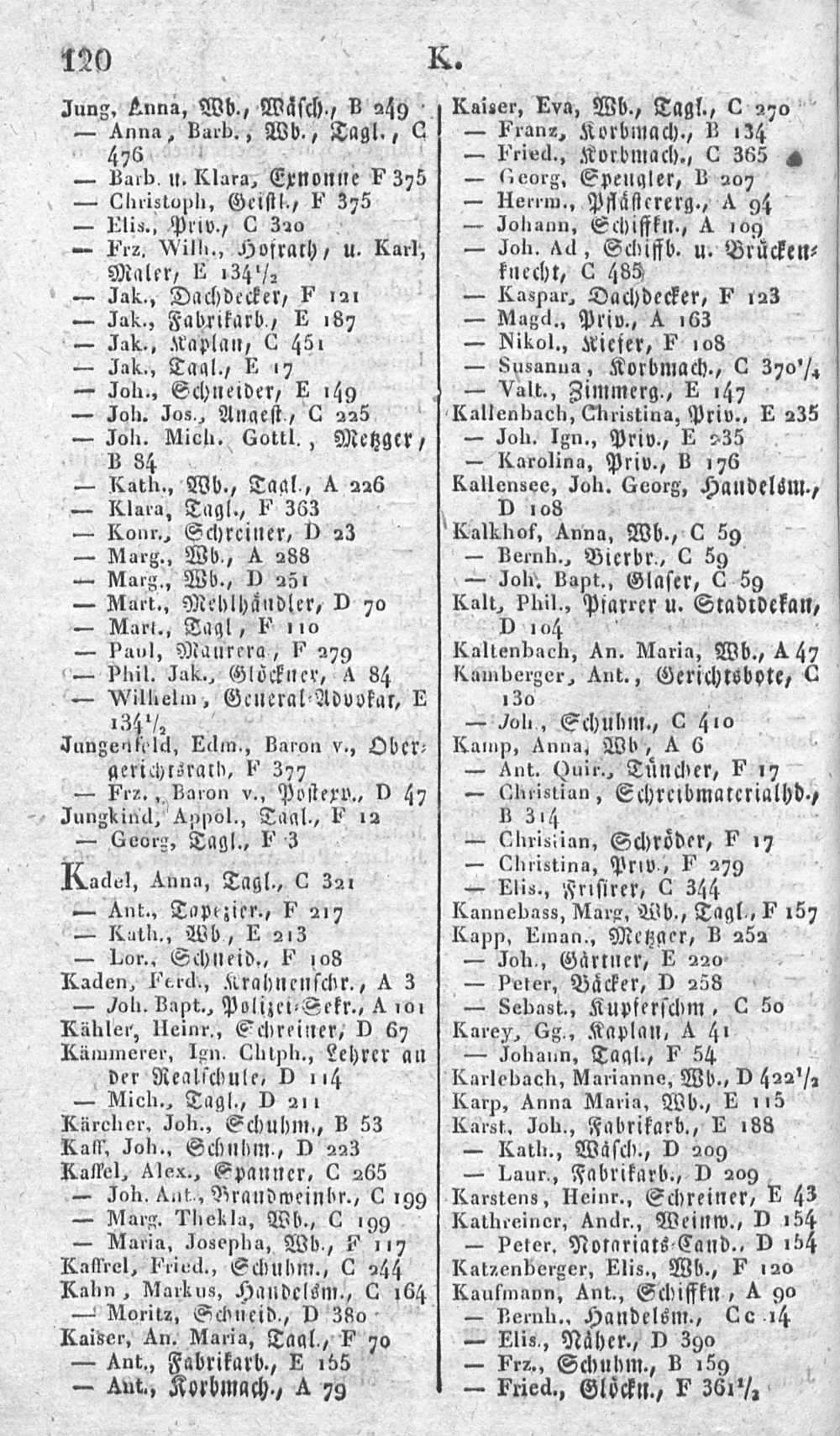 Alphabetisches Verzeichniß sämmtlicher Einwohner von Mainz in- und außerhalb der Ringmauern, mit Angabe der Lit. und Nro. ihrer Wohnungen