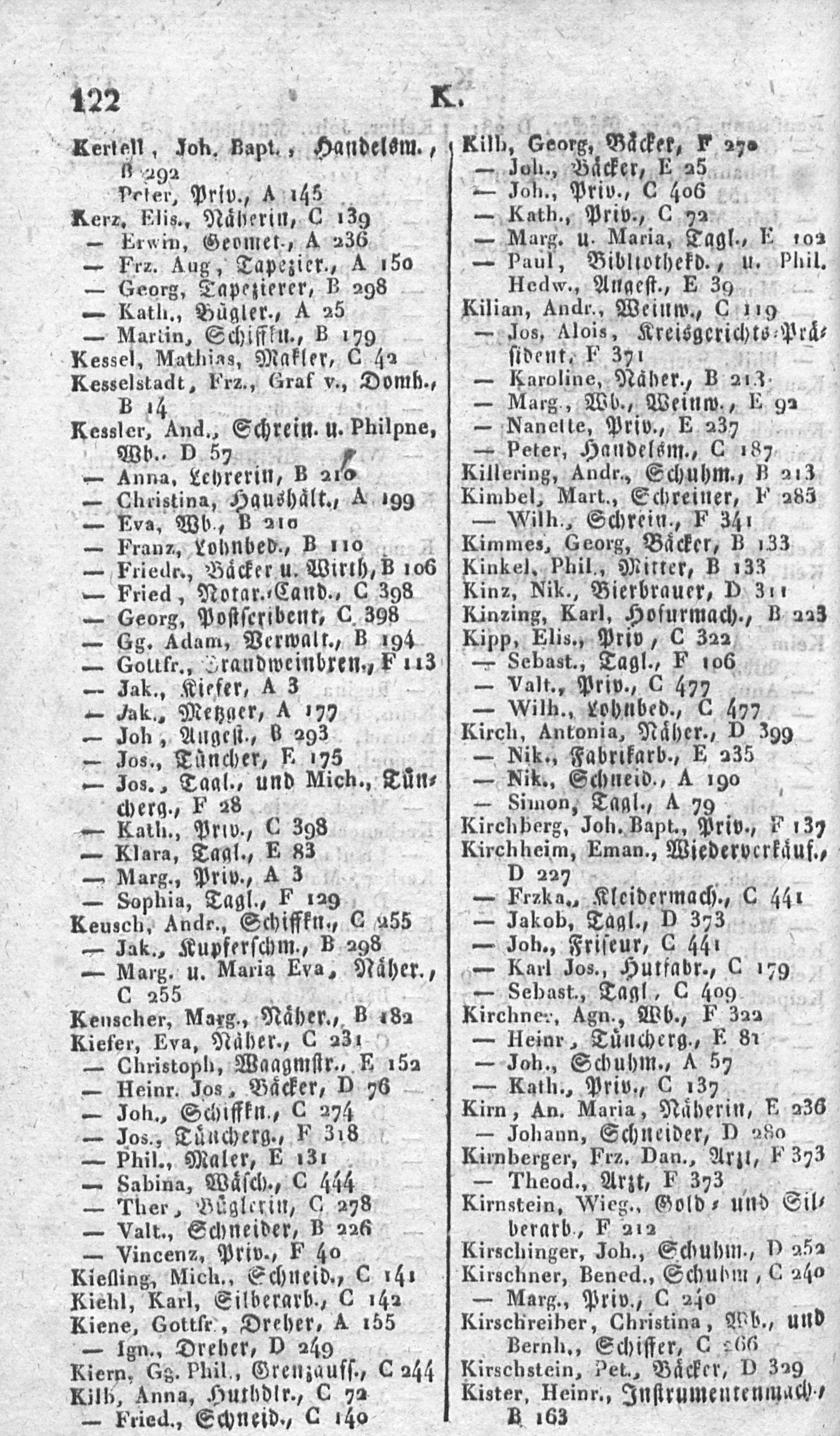 Alphabetisches Verzeichniß sämmtlicher Einwohner von Mainz in- und außerhalb der Ringmauern, mit Angabe der Lit. und Nro. ihrer Wohnungen