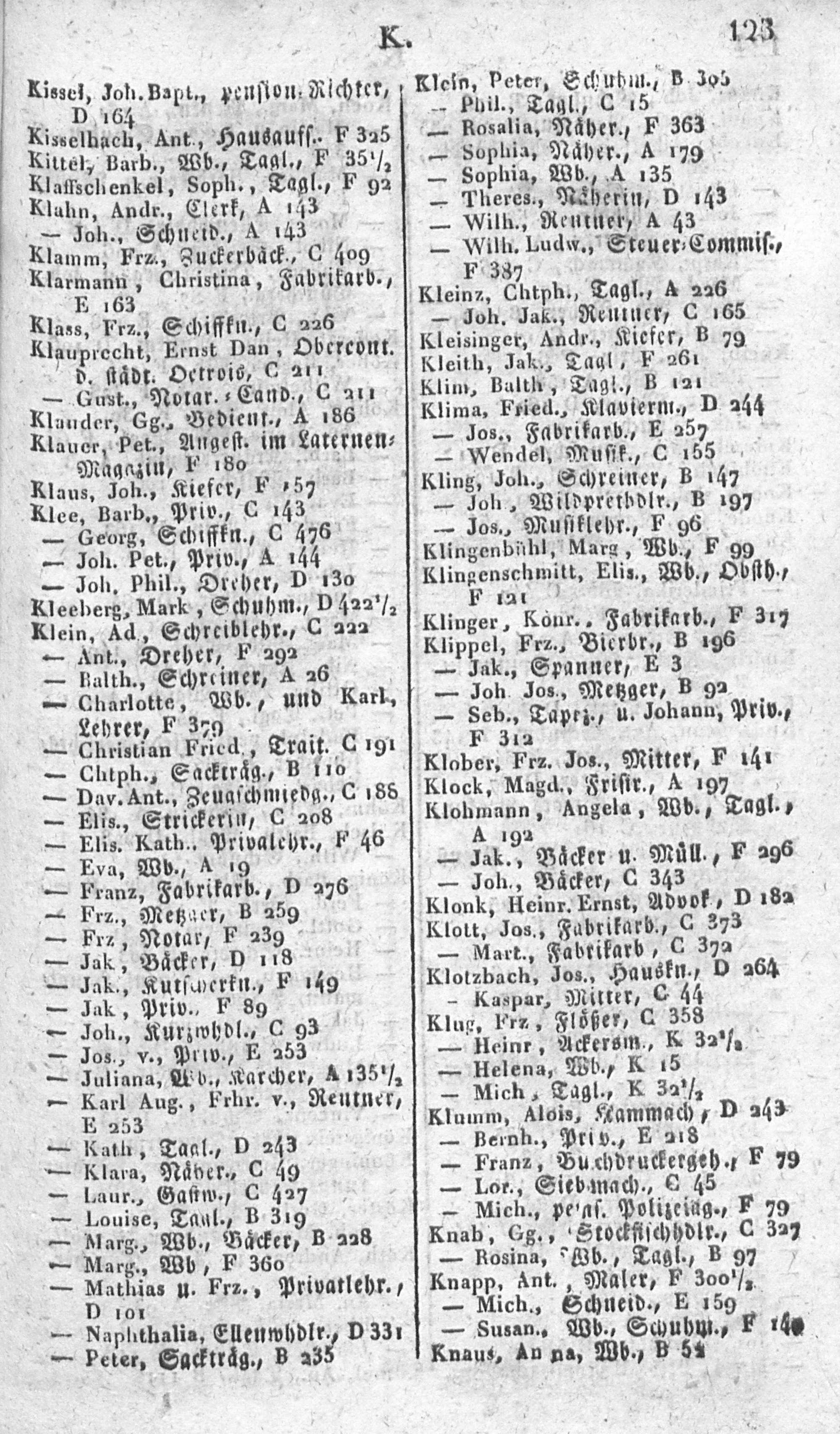 Alphabetisches Verzeichniß sämmtlicher Einwohner von Mainz in- und außerhalb der Ringmauern, mit Angabe der Lit. und Nro. ihrer Wohnungen