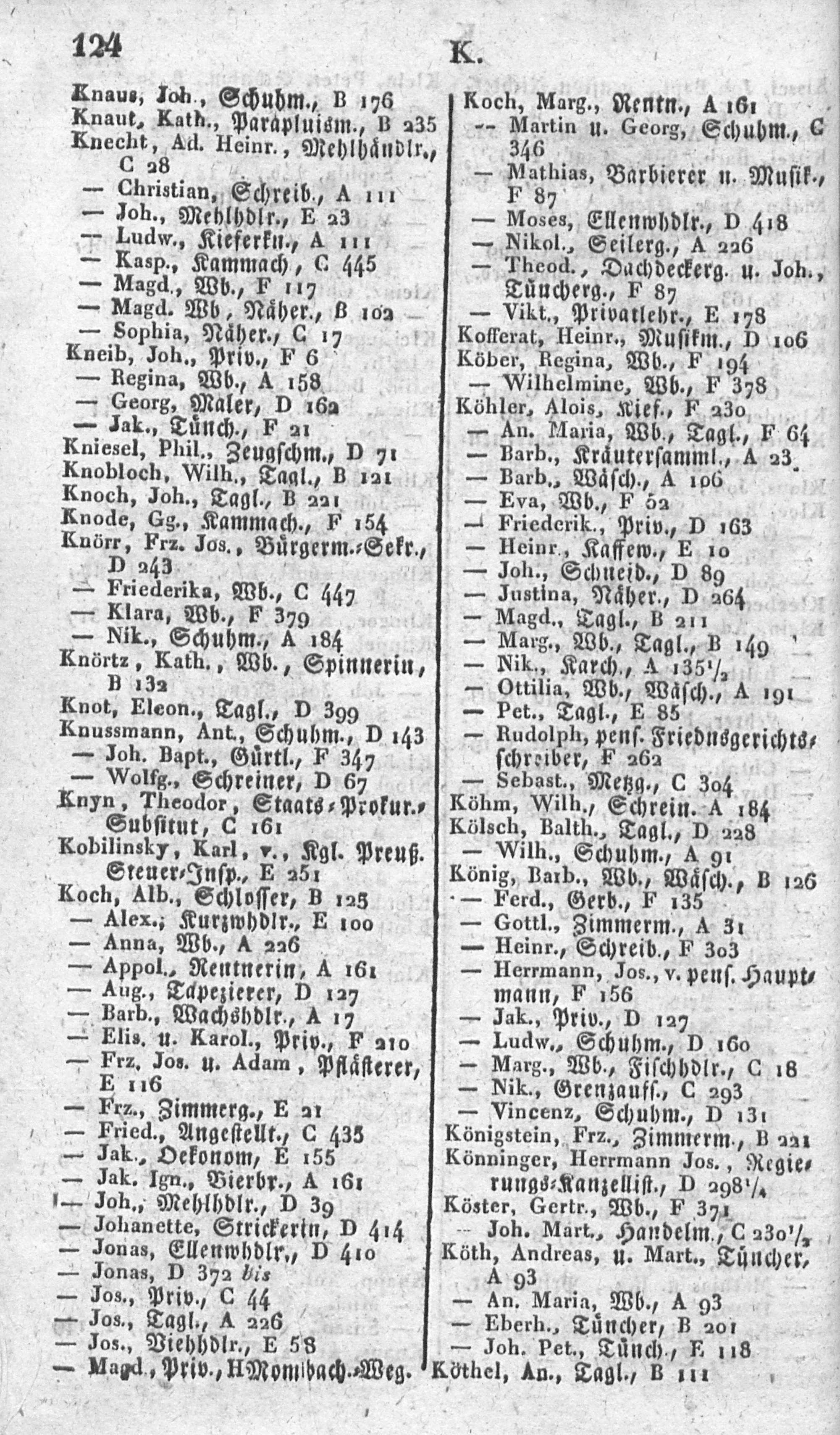 Alphabetisches Verzeichniß sämmtlicher Einwohner von Mainz in- und außerhalb der Ringmauern, mit Angabe der Lit. und Nro. ihrer Wohnungen