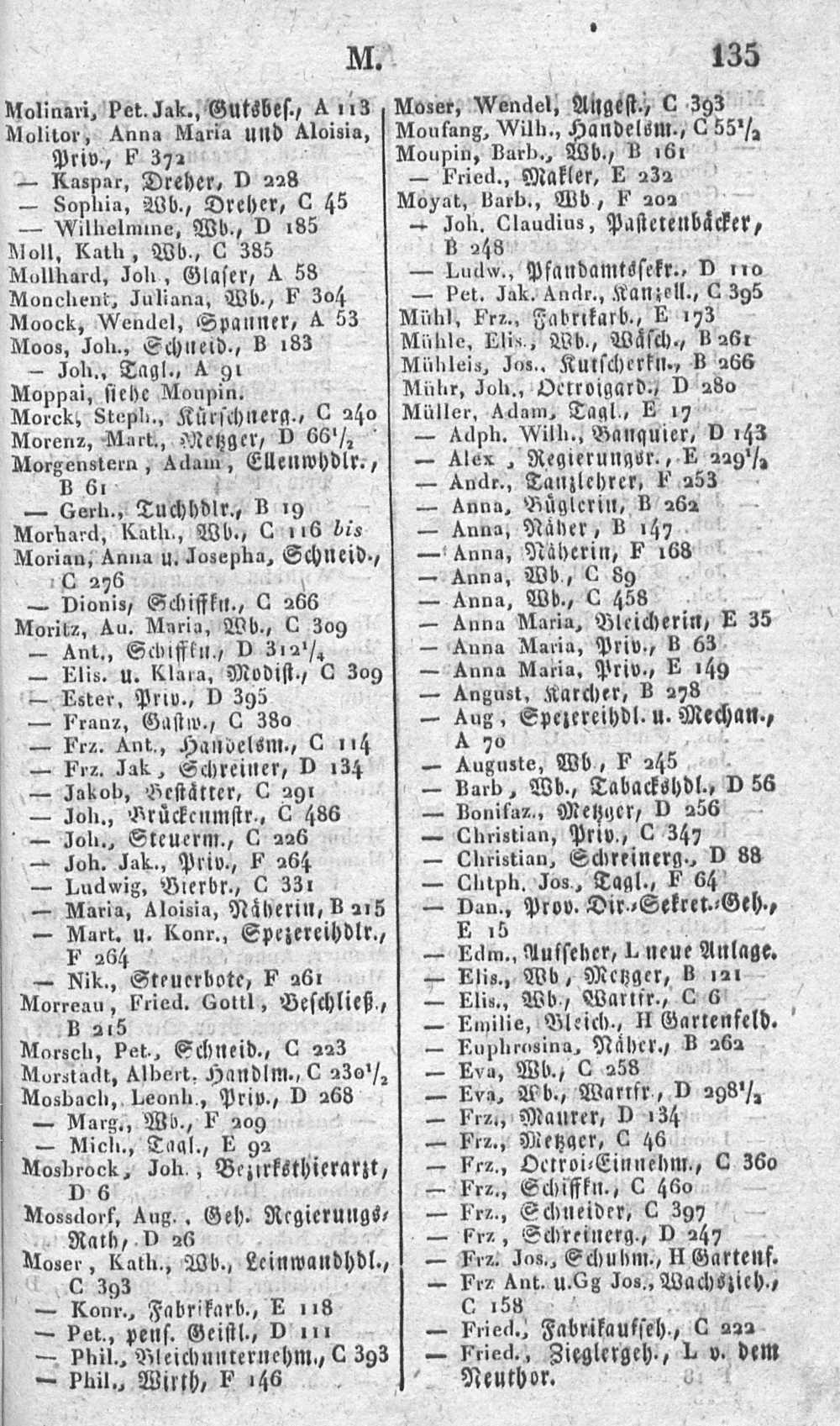 Alphabetisches Verzeichniß sämmtlicher Einwohner von Mainz in- und außerhalb der Ringmauern, mit Angabe der Lit. und Nro. ihrer Wohnungen