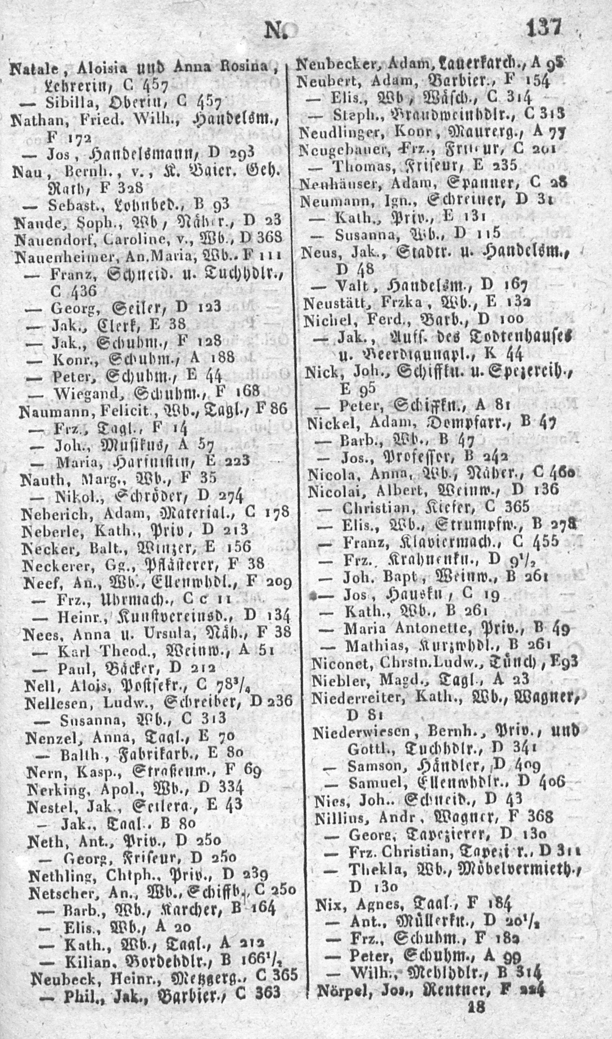 1830 - Neues alphabetisches Verzeichniß sämmtlicher Bewohner ...