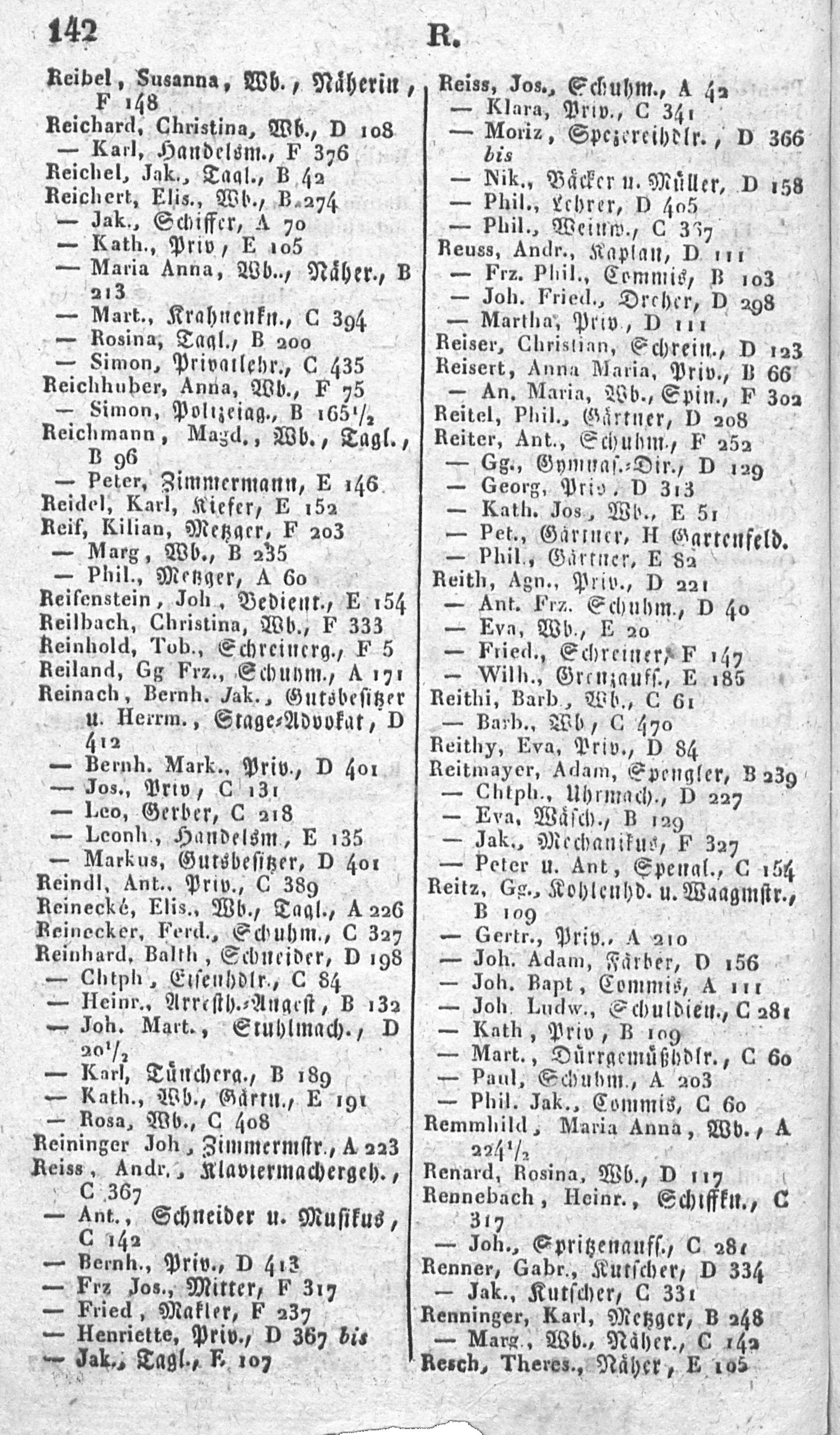Alphabetisches Verzeichniß sämmtlicher Einwohner von Mainz in- und außerhalb der Ringmauern, mit Angabe der Lit. und Nro. ihrer Wohnungen