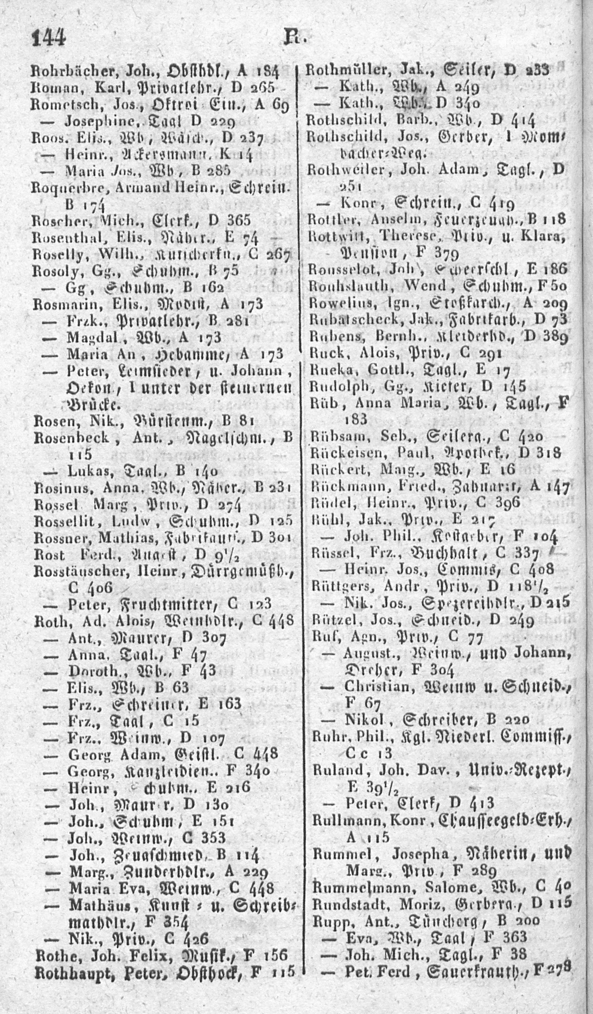 Alphabetisches Verzeichniß sämmtlicher Einwohner von Mainz in- und außerhalb der Ringmauern, mit Angabe der Lit. und Nro. ihrer Wohnungen