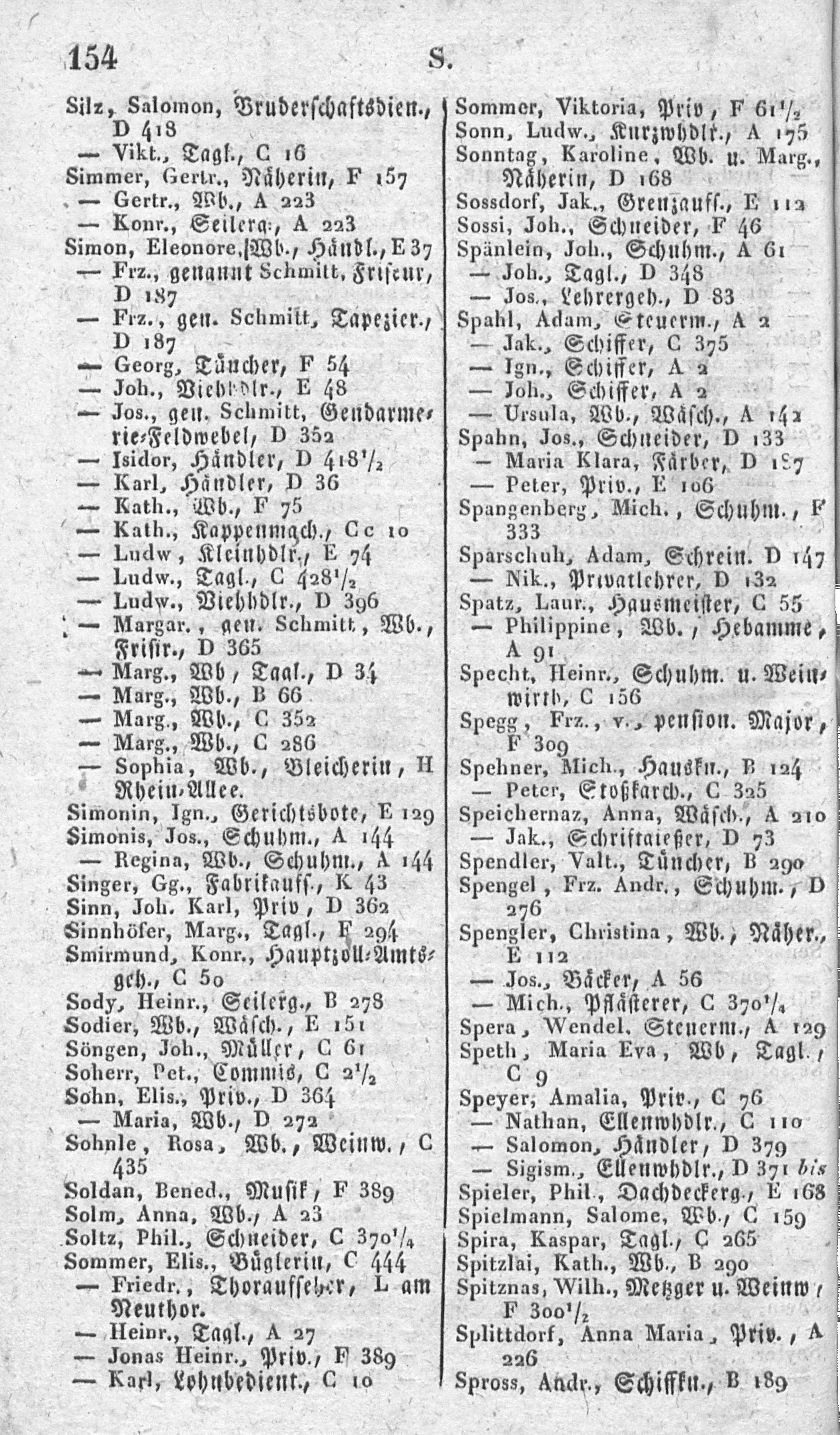 Alphabetisches Verzeichniß sämmtlicher Einwohner von Mainz in- und außerhalb der Ringmauern, mit Angabe der Lit. und Nro. ihrer Wohnungen