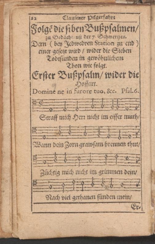 Außerlesenes Bett- Betracht und Gesang Buchlein von den sieben farnembsten Schmertzen Mariae Matris Dolorosae : in allen Processionen durchs Jahr, fürnemblich aber auff der Pilgerfahrt nacher Eberhards Clausen zu unser L. Frawen Miraculoser H. Capeln gar nützlich zu gebrauchen ; gezieret mit viel anderen New- und Uhralten uber auss schönen Melodeyen und Catholischen Kirch-Gesängen etc
