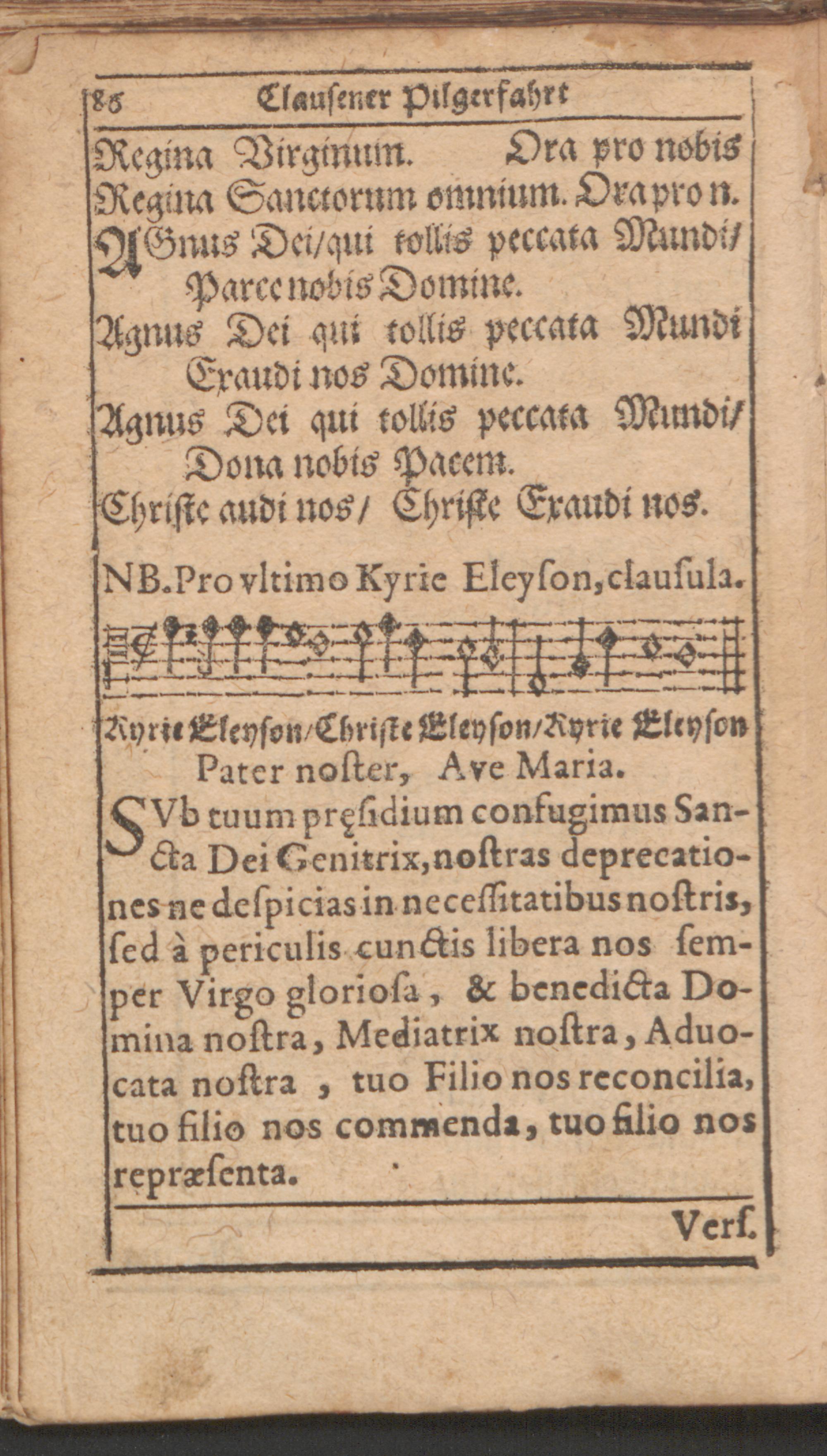 Außerlesenes Bett- Betracht und Gesang Buchlein von den sieben farnembsten Schmertzen Mariae Matris Dolorosae : in allen Processionen durchs Jahr, fürnemblich aber auff der Pilgerfahrt nacher Eberhards Clausen zu unser L. Frawen Miraculoser H. Capeln gar nützlich zu gebrauchen ; gezieret mit viel anderen New- und Uhralten uber auss schönen Melodeyen und Catholischen Kirch-Gesängen etc
