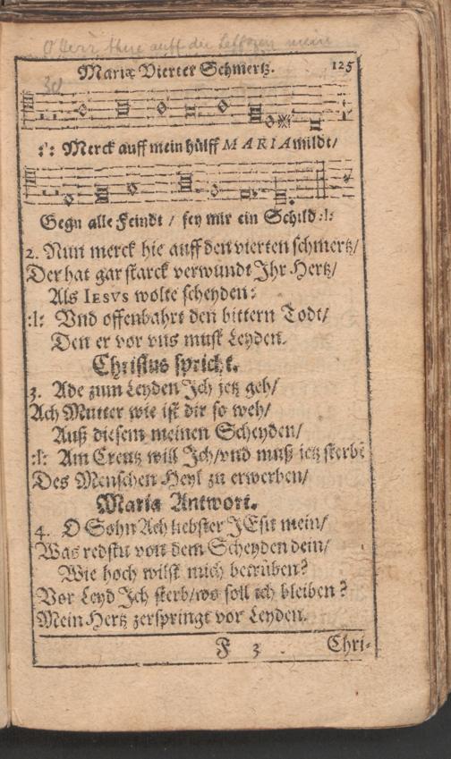 Außerlesenes Bett- Betracht und Gesang Buchlein von den sieben farnembsten Schmertzen Mariae Matris Dolorosae : in allen Processionen durchs Jahr, fürnemblich aber auff der Pilgerfahrt nacher Eberhards Clausen zu unser L. Frawen Miraculoser H. Capeln gar nützlich zu gebrauchen ; gezieret mit viel anderen New- und Uhralten uber auss schönen Melodeyen und Catholischen Kirch-Gesängen etc