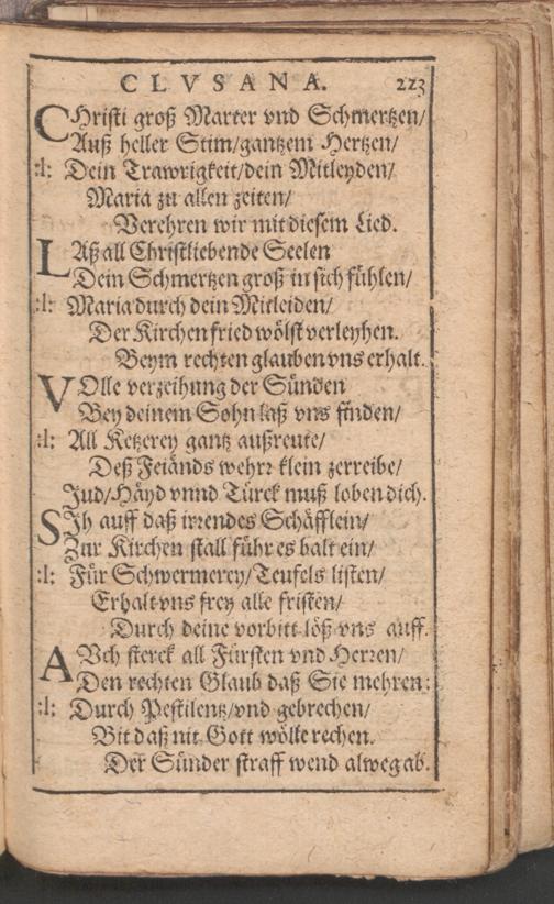 Außerlesenes Bett- Betracht und Gesang Buchlein von den sieben farnembsten Schmertzen Mariae Matris Dolorosae : in allen Processionen durchs Jahr, fürnemblich aber auff der Pilgerfahrt nacher Eberhards Clausen zu unser L. Frawen Miraculoser H. Capeln gar nützlich zu gebrauchen ; gezieret mit viel anderen New- und Uhralten uber auss schönen Melodeyen und Catholischen Kirch-Gesängen etc
