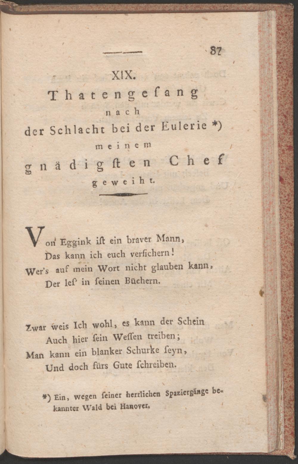 XIX. Thatengesang nach der Schlacht bei der Eulerie meinem gnädigsten Chef gewei...