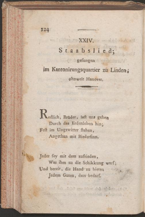 XXIV. Staabslied; gesungen im Kantonirungsquartier zu Linden, ohnweit Hanover.
