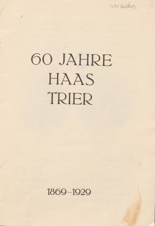 60 Jahre Haas Trier : 1869 - 1929